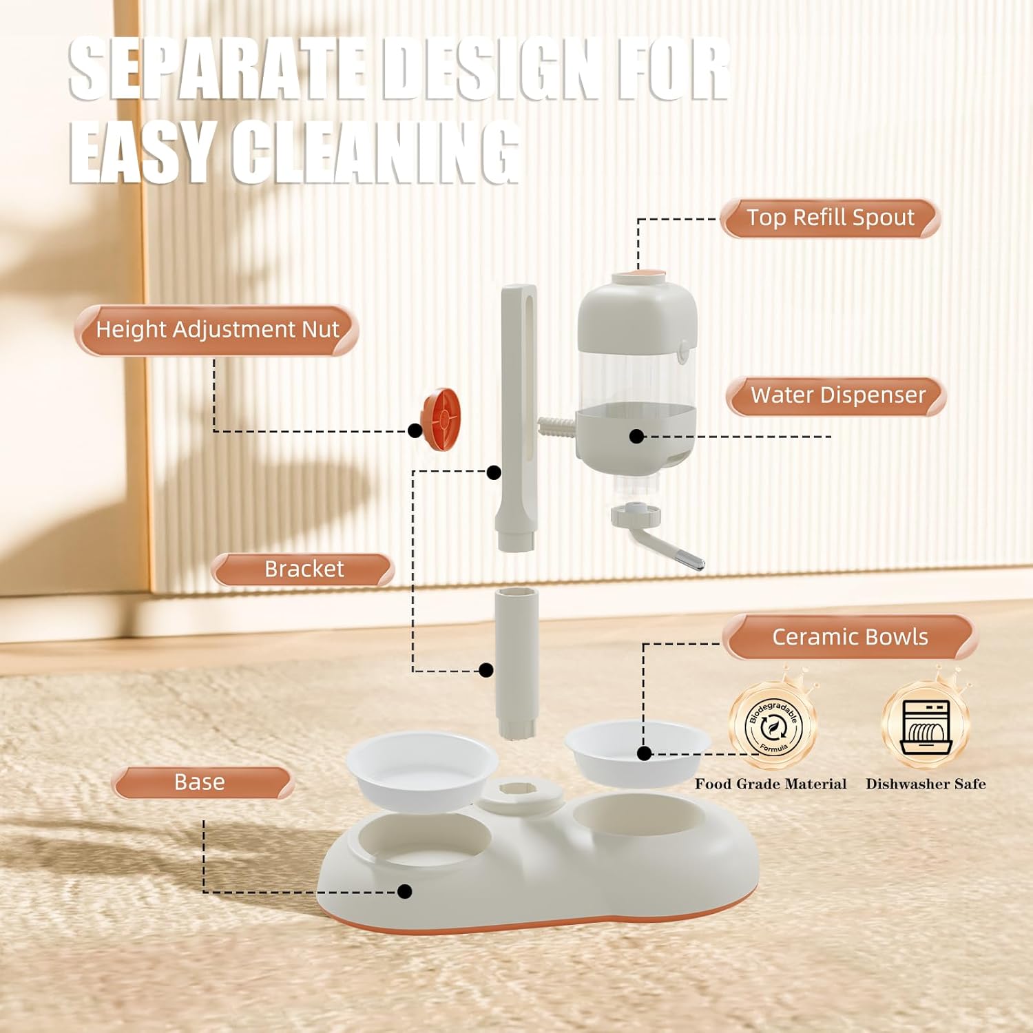 Pet Bowls with Weaning Bottles,3 in 1 Height Adjustable Water Dispenser for Dogs,15°Tilted Food Bowls for Small Dogs,Puppy Feeding,Pet Food Bowls for Cats,Rabbits,Ferrets