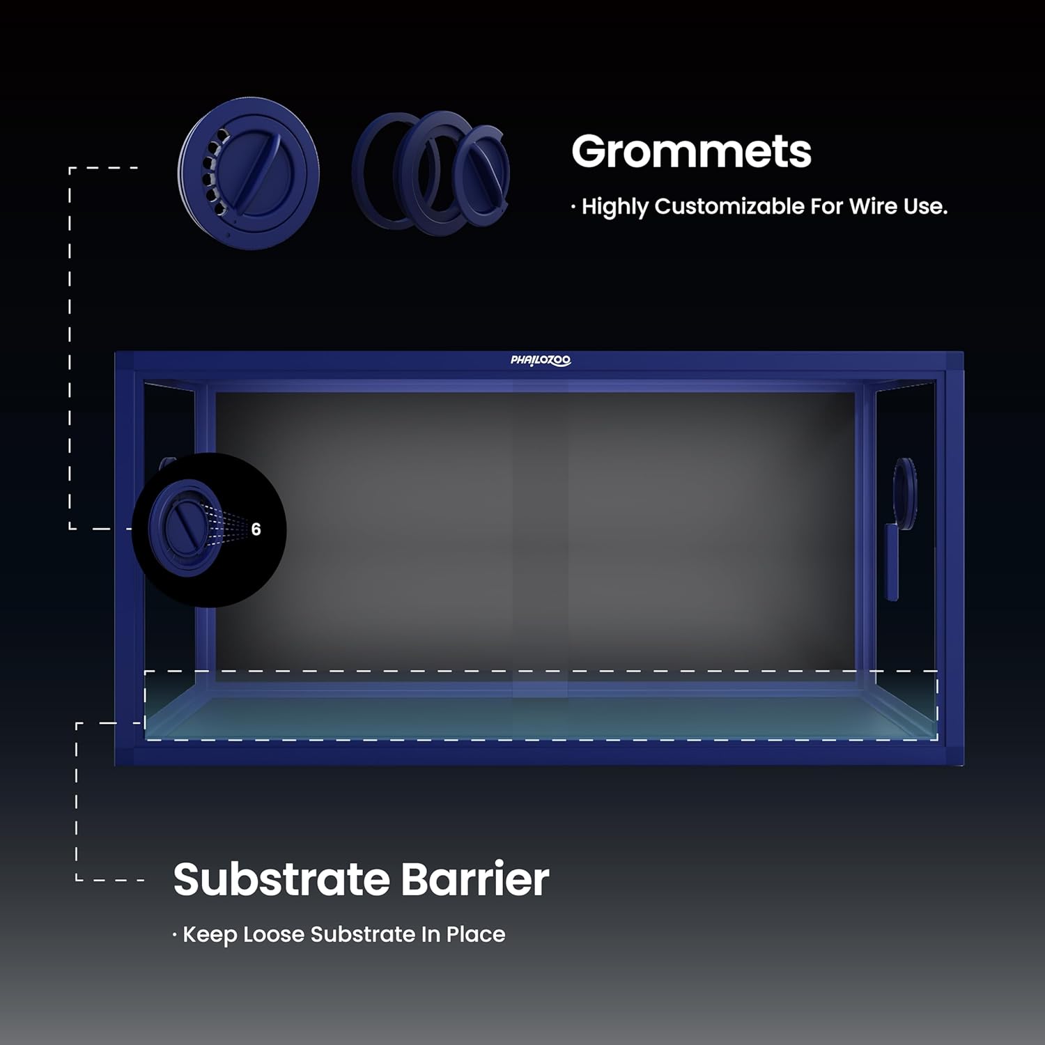 - γEasy MaintenanceγFront opening reptile terrarium with door handles included for easy cleaning & feeding. No more suction cup problems or unsightly fingerprints all over. The substrate barrier keeps the substrate in place. Our tempered glass doors are durable enough to withstand scratching.