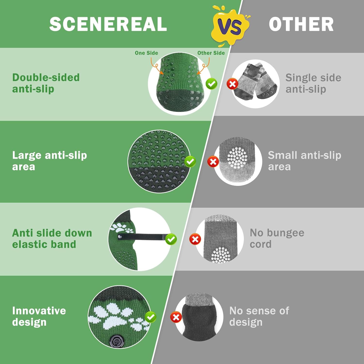 SCENEREAL Anti Slip Dog Sock to Prevent Licking Paws for Hardwood Floors, Boots & Paw Protector Shoes for Hot/Cold Pavement with Grippers, Double Sides Grips for Small Medium Large Senior Dogs, XS