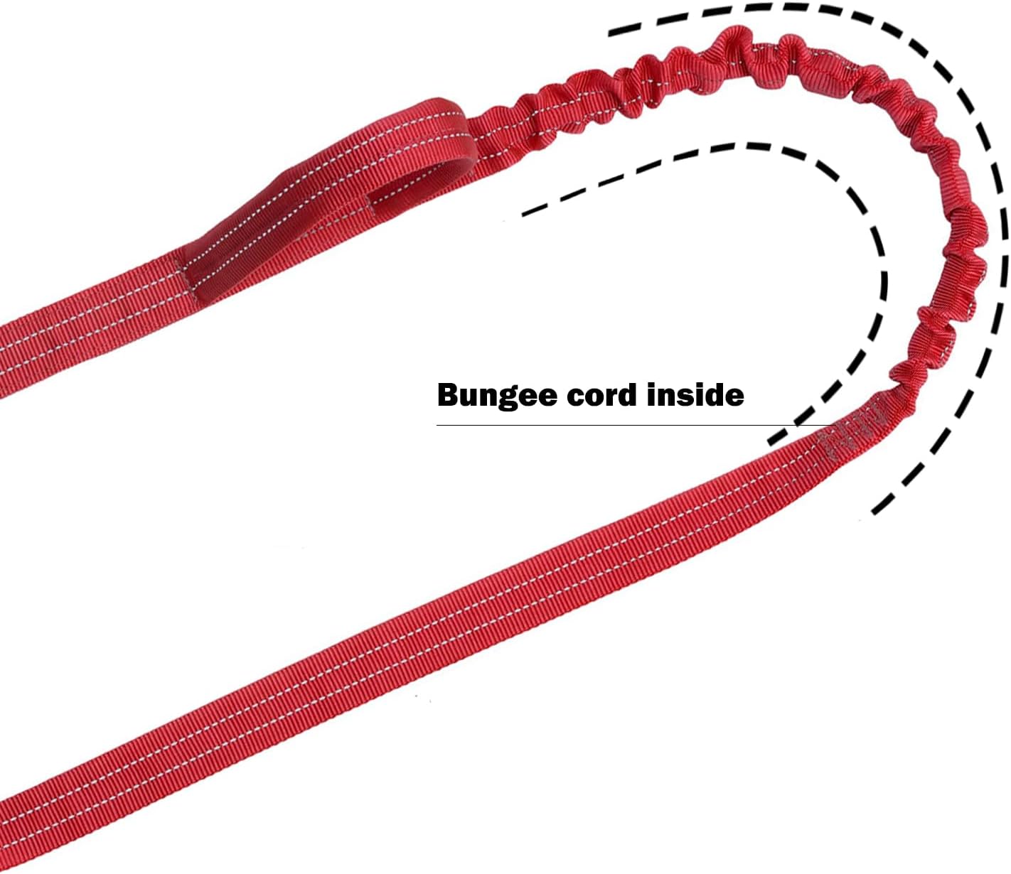 ICEFANG Tactical Dog Leash,K9 Training Walking Bungee Lead with 2 Control Handle,Heavy Duty Quick Release Metal Clasp,for Medium Large Breed (Reflective Red, 6 FT)