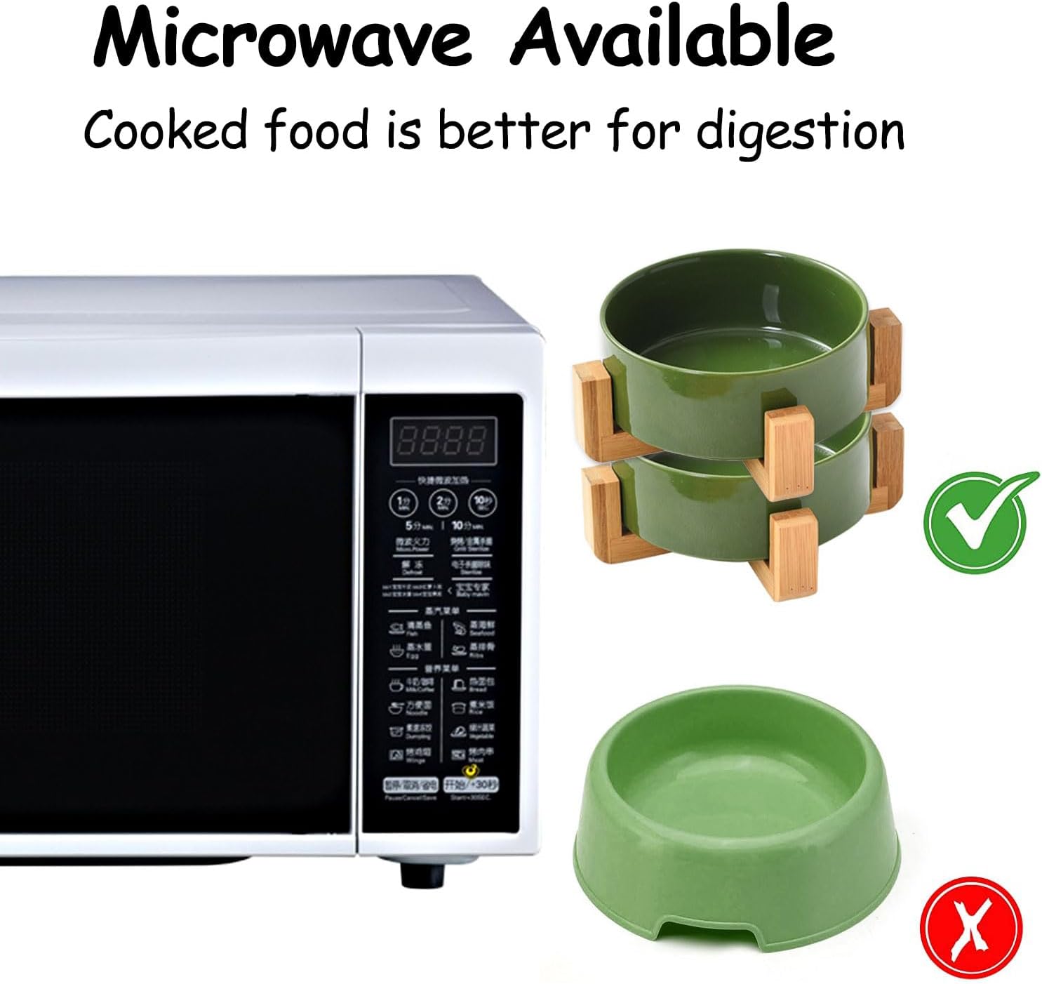 - SAFE MATERIAL EASY TO CLEAN - Ceramic pet bowls is made of Porcelain Ceramic with wood frame to keep from sliding on the floor. Ceramic cat dog bowls are free of lead and cadmium. High temperature ceramic, non-toxic harmless, no smell, durable. Clean sanitation, be helpful for pet health. and the cat dog food water bowls conveniently dishwasher safe so it can be easily cleaned. No Fuss.