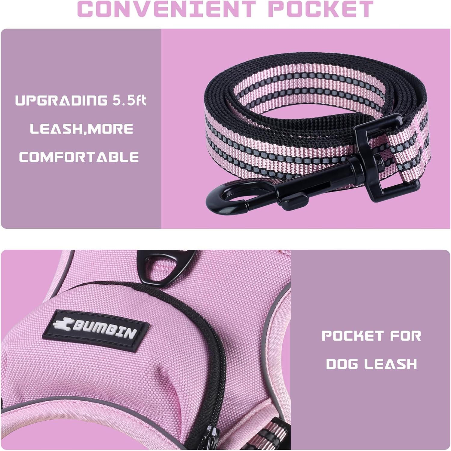 BUMBIN Dog Harness for Large Dogs, No Pull Adjustable No Choke Pet Vest with Dog Leash Fit Smart Reflective Pet Walking Harness for Training Easy Control Soft Handle Pink XL