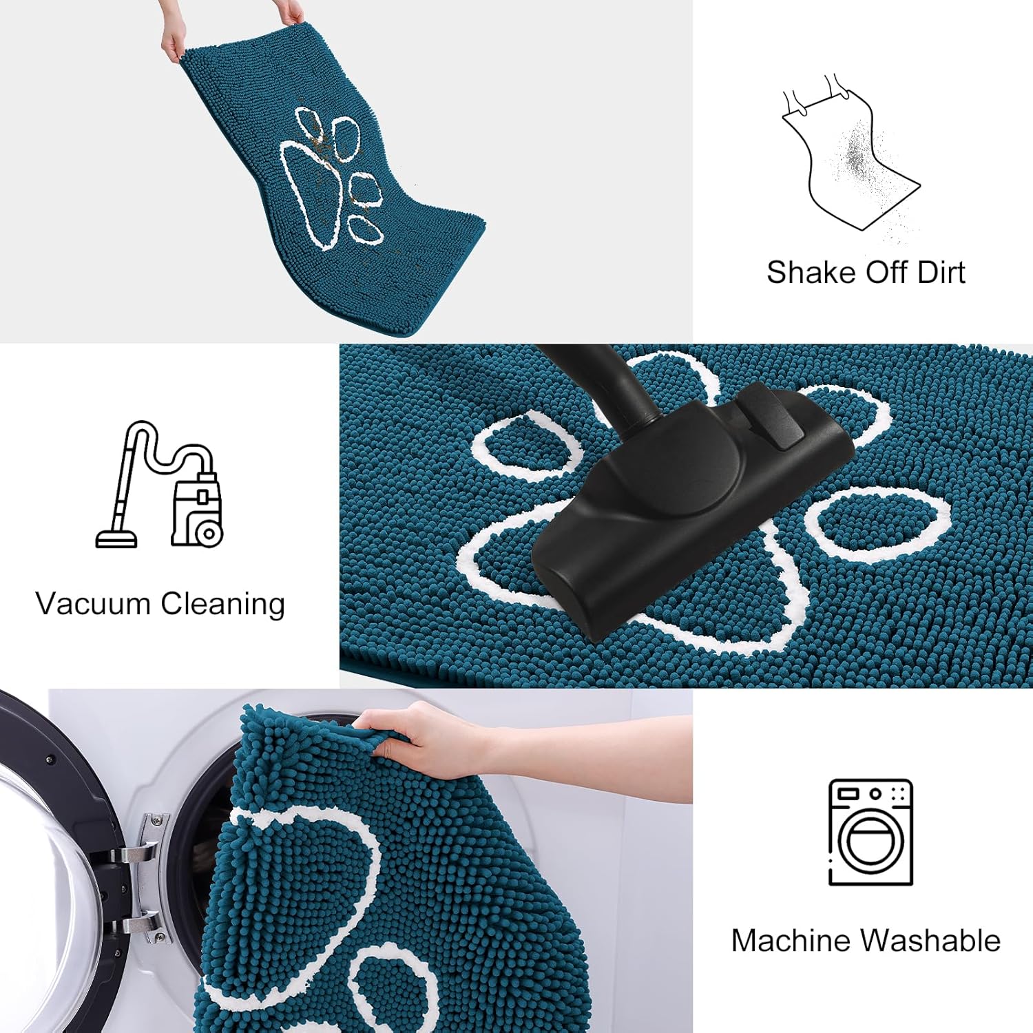 Smiry Dog Door Mat for Muddy Paws, Absorbent Dirt Trapper Non Slip Quick Dry Washable Chenille Mat for Mud Dogs, Entry Rug for Indoor and Outdoor (24x16 Inches, Atlantic Blue)