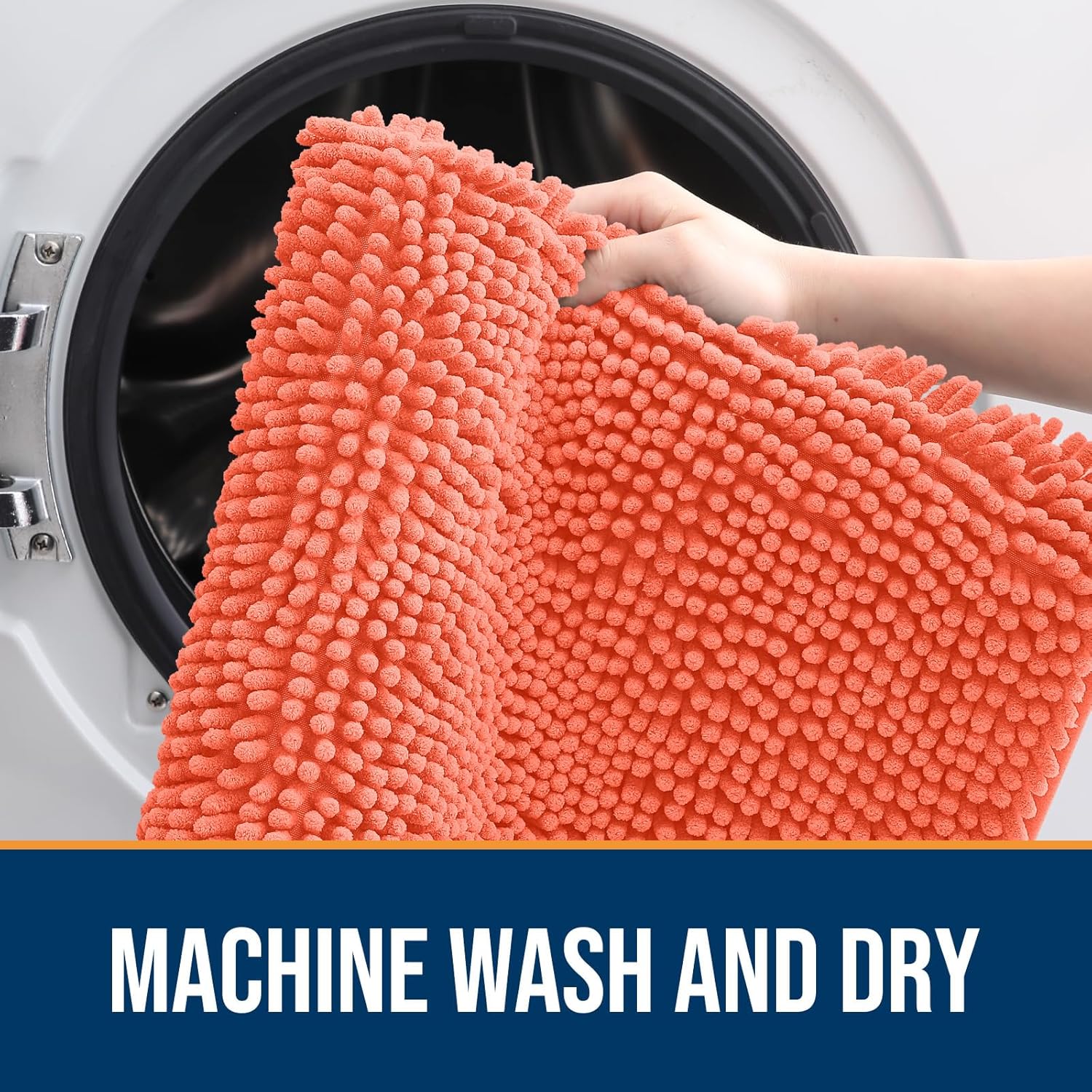 OLANLY Dog Door Mat for Muddy Paws 30x20, Absorbs Moisture and Dirt, Absorbent Non-Slip Washable Doormat, Quick Dry Chenille Mud Mat for Dogs, Entry Indoor Entryway Carpet for Inside Floor, Coral