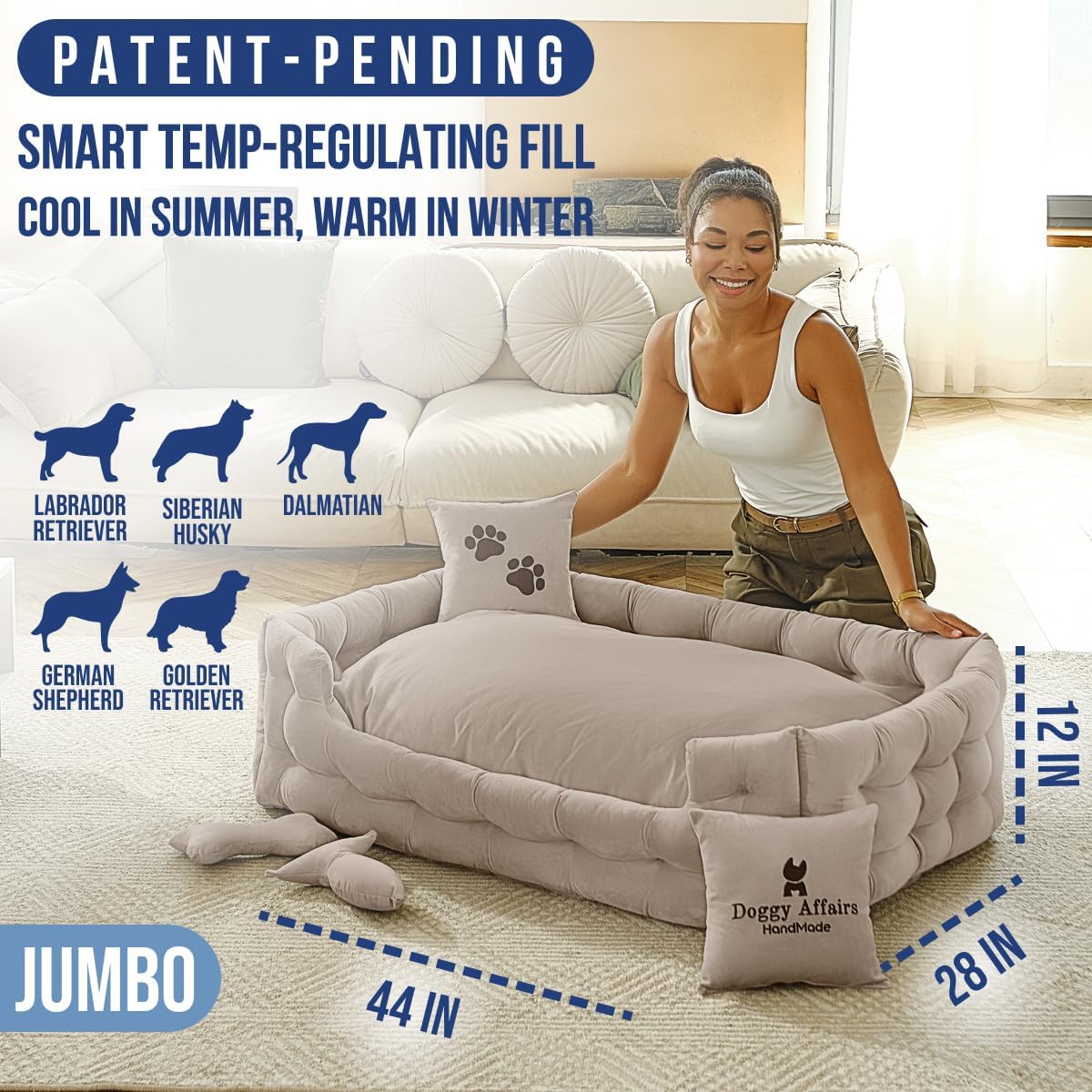- ECO-FRIENDLY LUXURY LOVED BY 3,000+ DOG PARENTS: Filled with temp-smart fibers made from 5M+ recycled bottles. Tested by 500+ rescue dogs for durability, comfort, and anxiety relief — proven zero-flattening support.