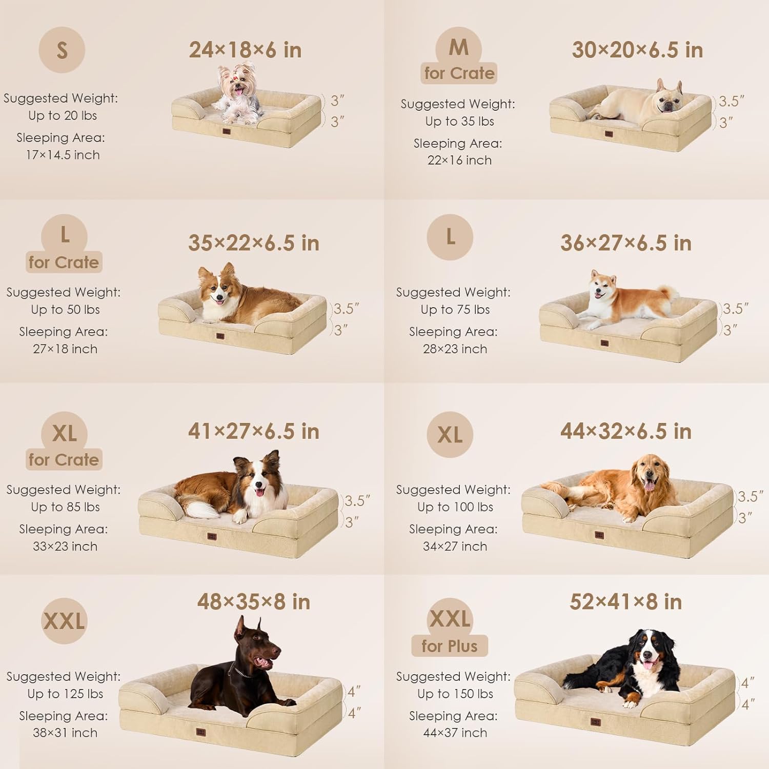 EHEYCIGA Orthopedic Dog Beds for Large Dogs, Waterproof Memory Foam Large Pet Bed with Sides, Non-Slip Bottom and Egg-Crate Foam Dog Couch Bed with Washable Removable Cover, Greige
