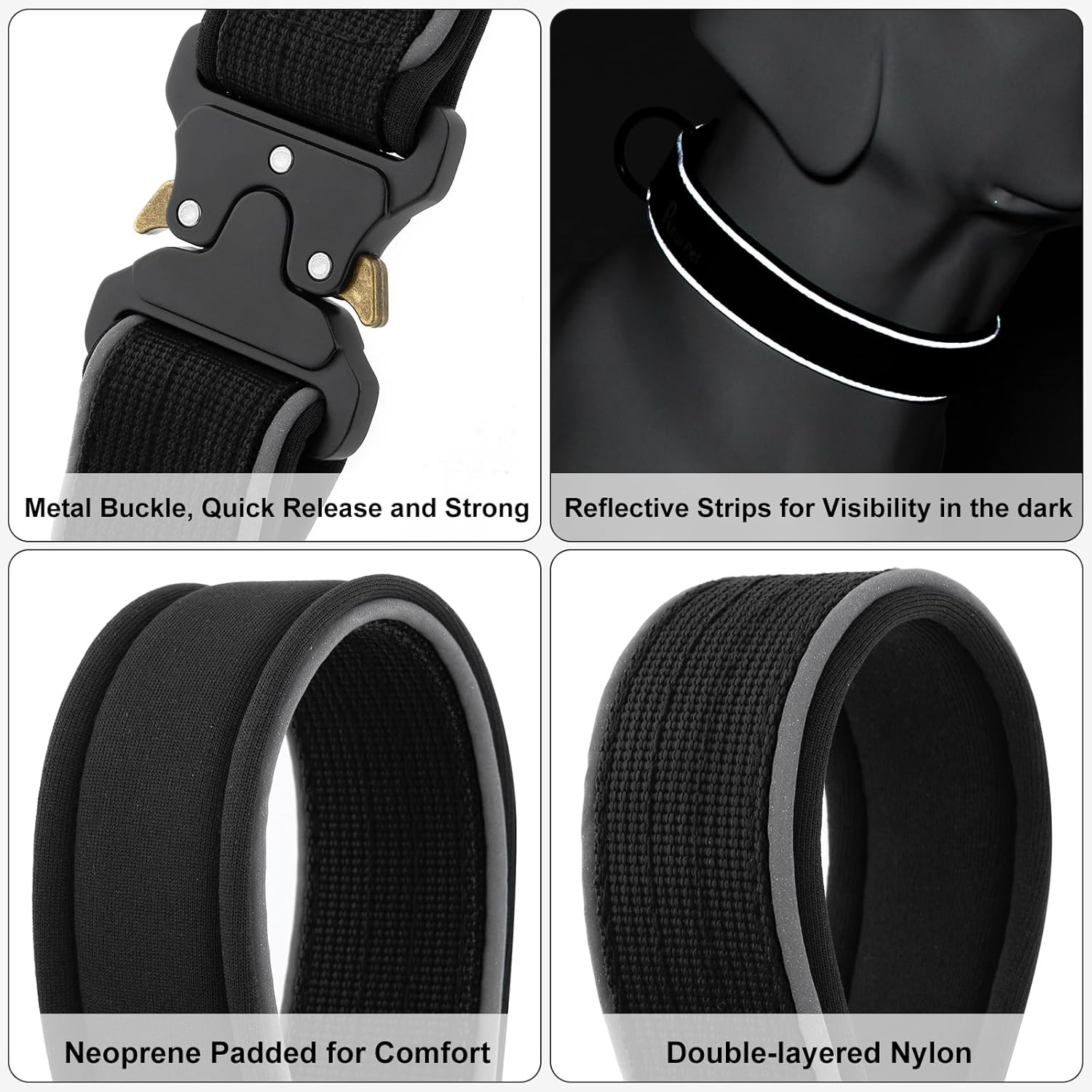 Plutus Pet Tactical Dog Collar, Reflective, Adjustable Heavy Duty Dog Collar, Soft Padded and Comfortable, for Small Medium and Large Dogs (Black, L)