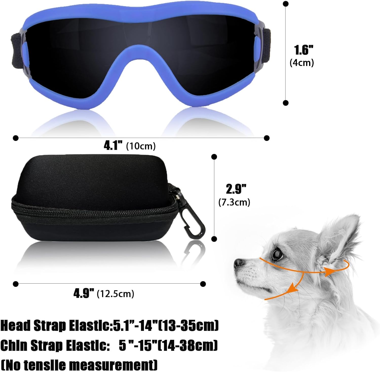 - USE SIZE: Whether it's the beach, the park or an outdoor adventure, the puppy sunglasses provide extra protection and comfort, the size of the glasses is: 5.9in x 1.8in, the size of the hangable portable glasses case: 5.1in x 3.1in x 2.75in, the measurement of the elastic head circumference band of the puppy glasses ranges from: 5.1in to 14in, the measurement of the jaw elastic band ranges from: 5in to 15in, the measurement size of the elastic band is not stretched, it is recommended to measure your dog's head circumference before purchasing for purchase.