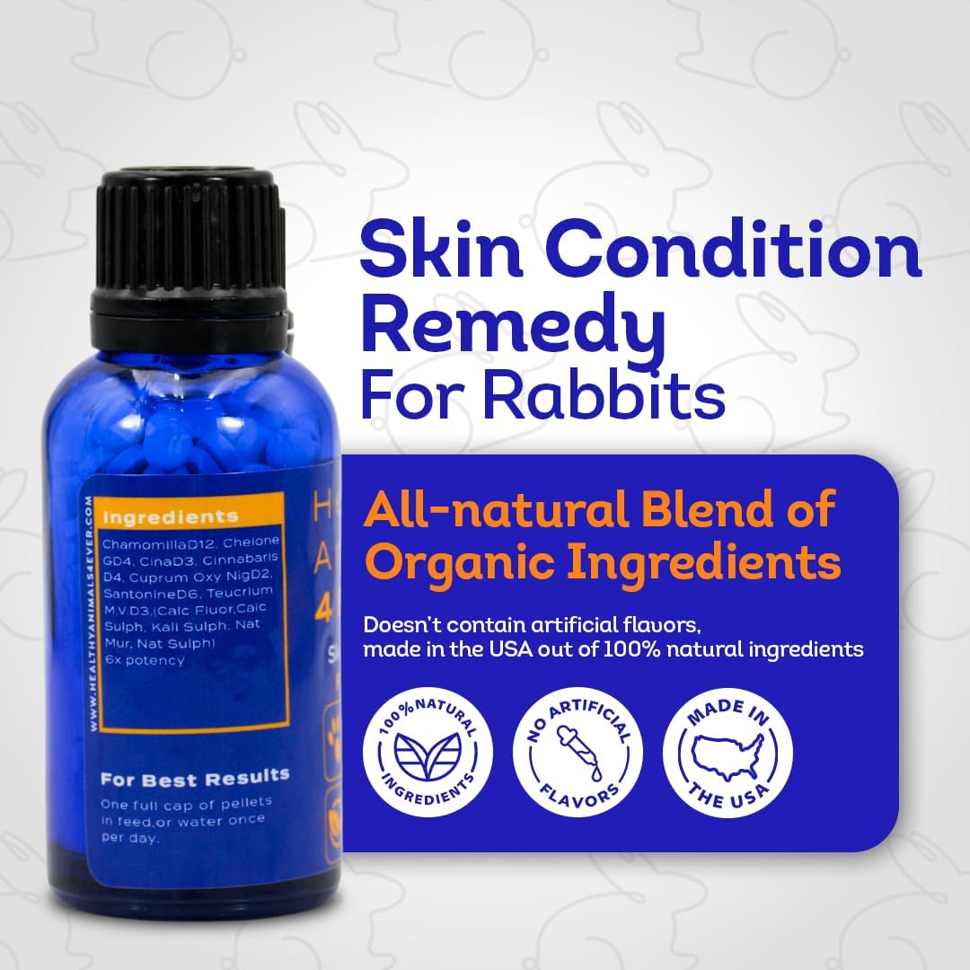 - ALL-NATURAL SKIN RELIEF: Our all-natural treatment is designed to effectively address common skin conditions in rabbits, including mites, fleas, and other irritations, offering a safe and homeopathic solution.