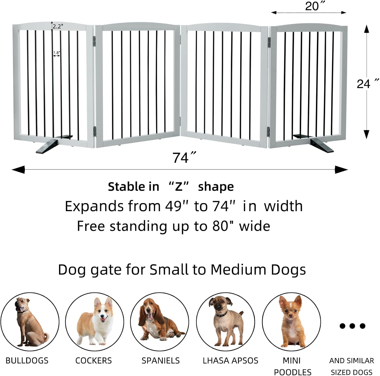 - 【Size】: Dog fence opened size:W80"*D0.75"*H24";Collapsed size:W20"*D2.9"*H24".