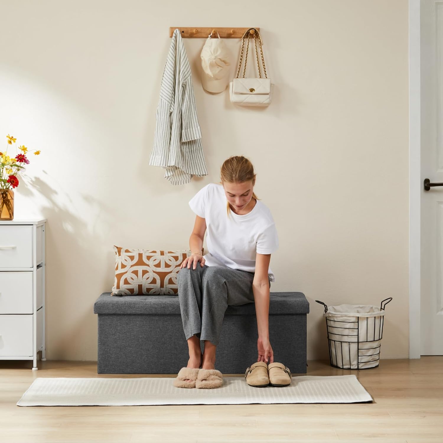 Sweetcrispy 43in Foldable Storage Ottoman, Storage Chest for Bedroom End of Bed, Large Ottoman Bench Foot Rest Stool with Padded Seat for Entryway Living Room, Support 660lbs 154L-Linen Cloth Grey