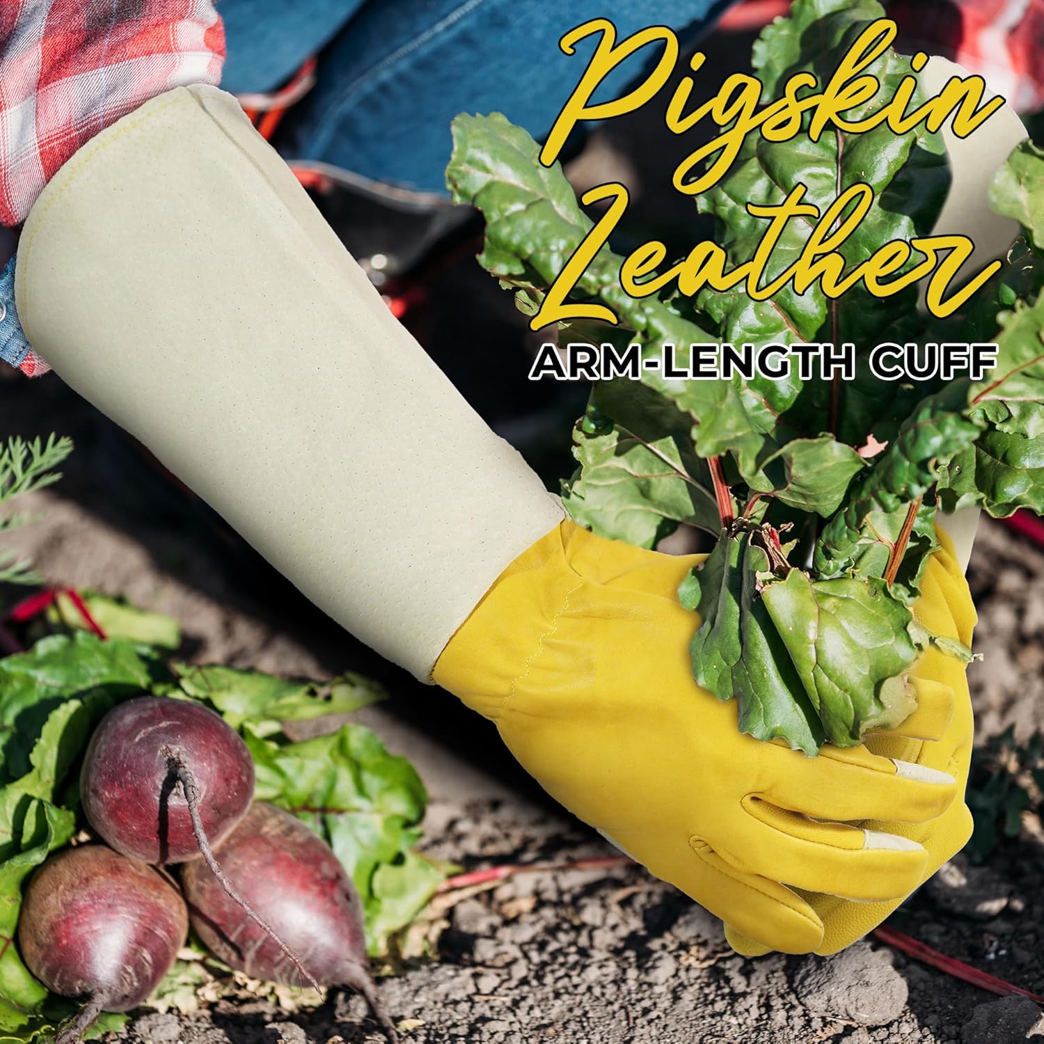 HANDLANDY Rose Pruning Gardening Gloves for Men Women, Thorn Proof Forearm Protection Leather Garden Gloves, Gardening Gifts for Gardeners (Yellow- Goatskin, X-Large (Pack of 1))