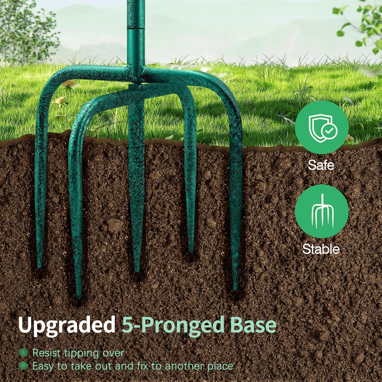 - 【New Upgraded 5-Pronged Base】Upgraded 5-forked base that resists tipping, adds more stability for this birdbath, make sure this birdbath stay in the soil of your garden upright and firmly. Heavy duty metal stake with black powder coat finish offers strong support for this bird bath, so that it is hard to bend, break or fracture.
