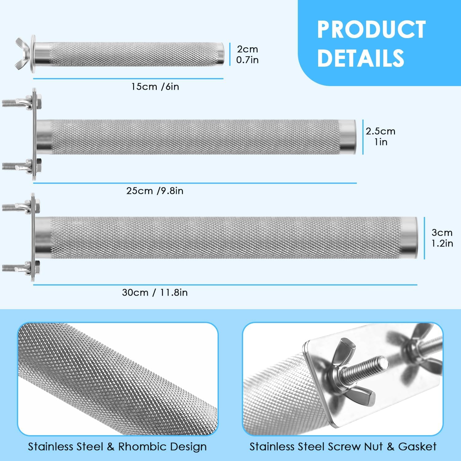 - Ideal Size: With a length of 11.8 inches and a diameter of 1.2 inches, suitable for small to large parrots.
