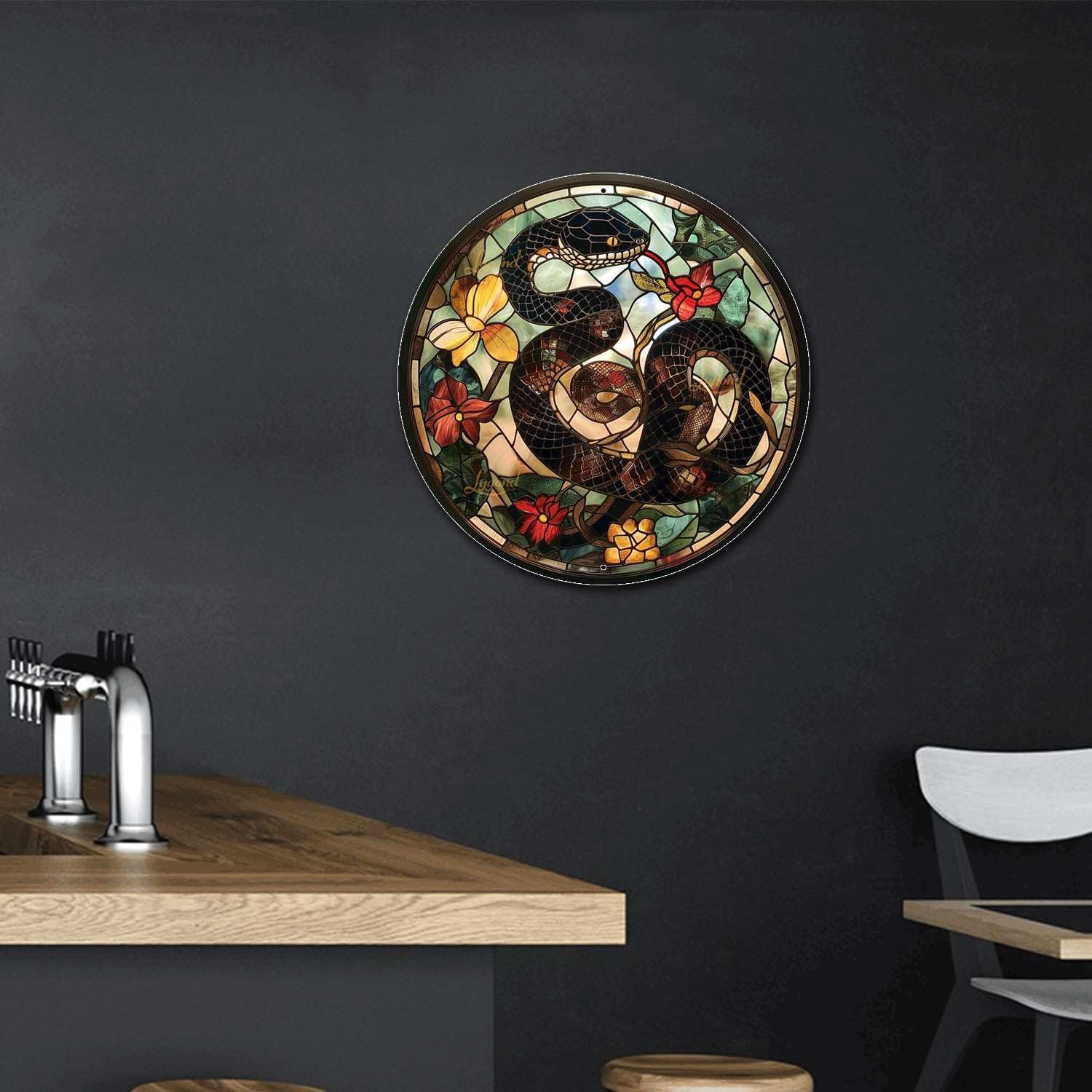 Lygond Metal Sign Tin Sign Circular Stained Glass Snake Gardening Sign for Gift 12×12 Inches