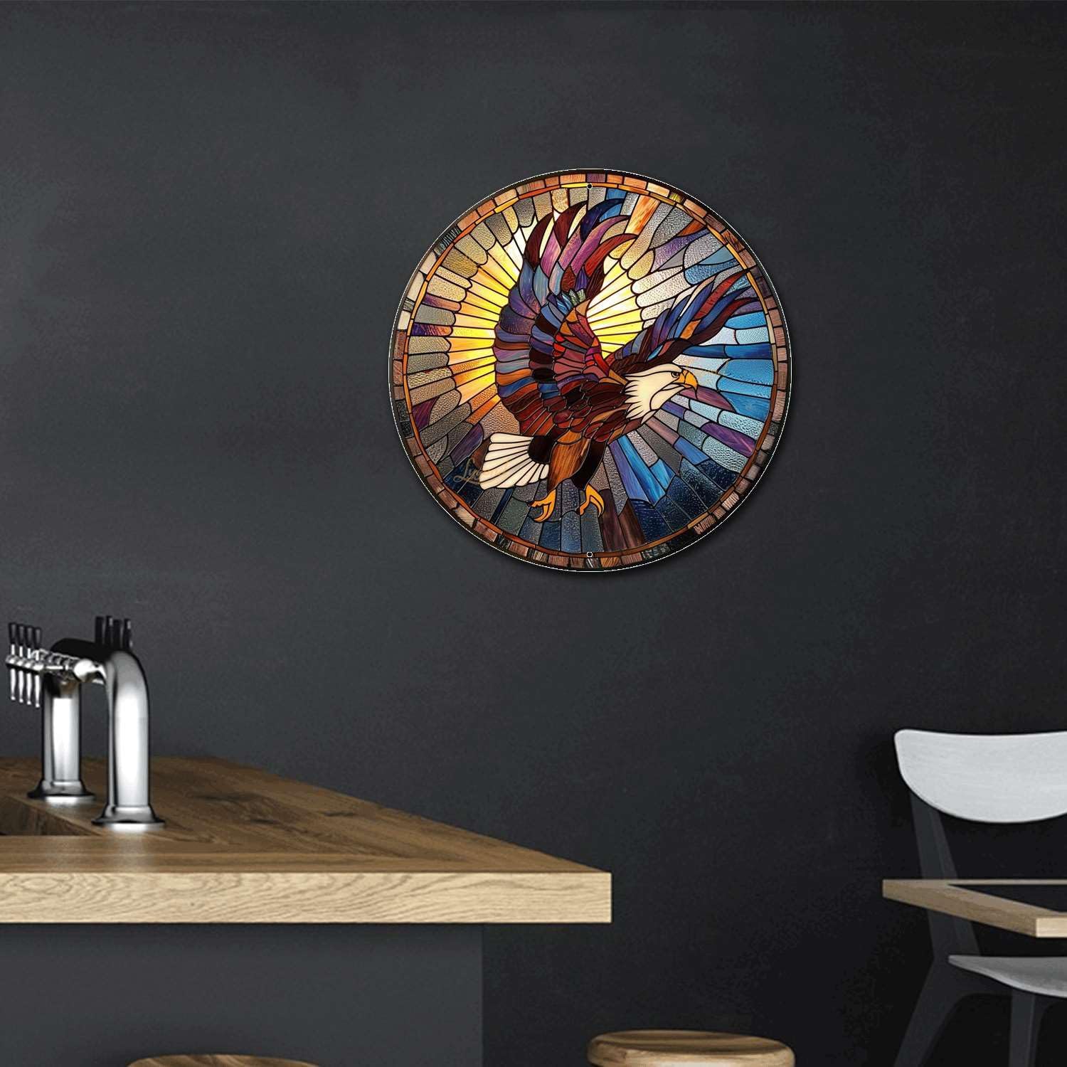 Lygond Metal Sign Tin Sign Circular Stained Glass Eagle Bathroom Decor For Club 12×12 Inches