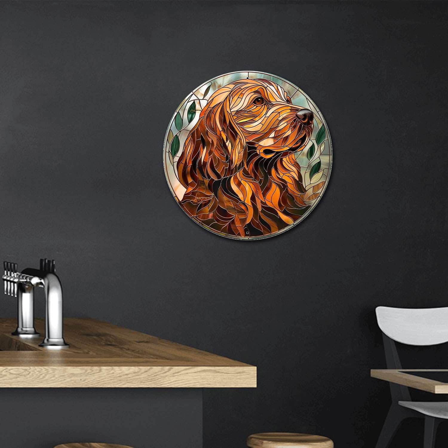 Lygond Metal Sign Tin Sign Circular Stained Glass Dog Outhouse Wall Decor For Pet 8×8 Inches