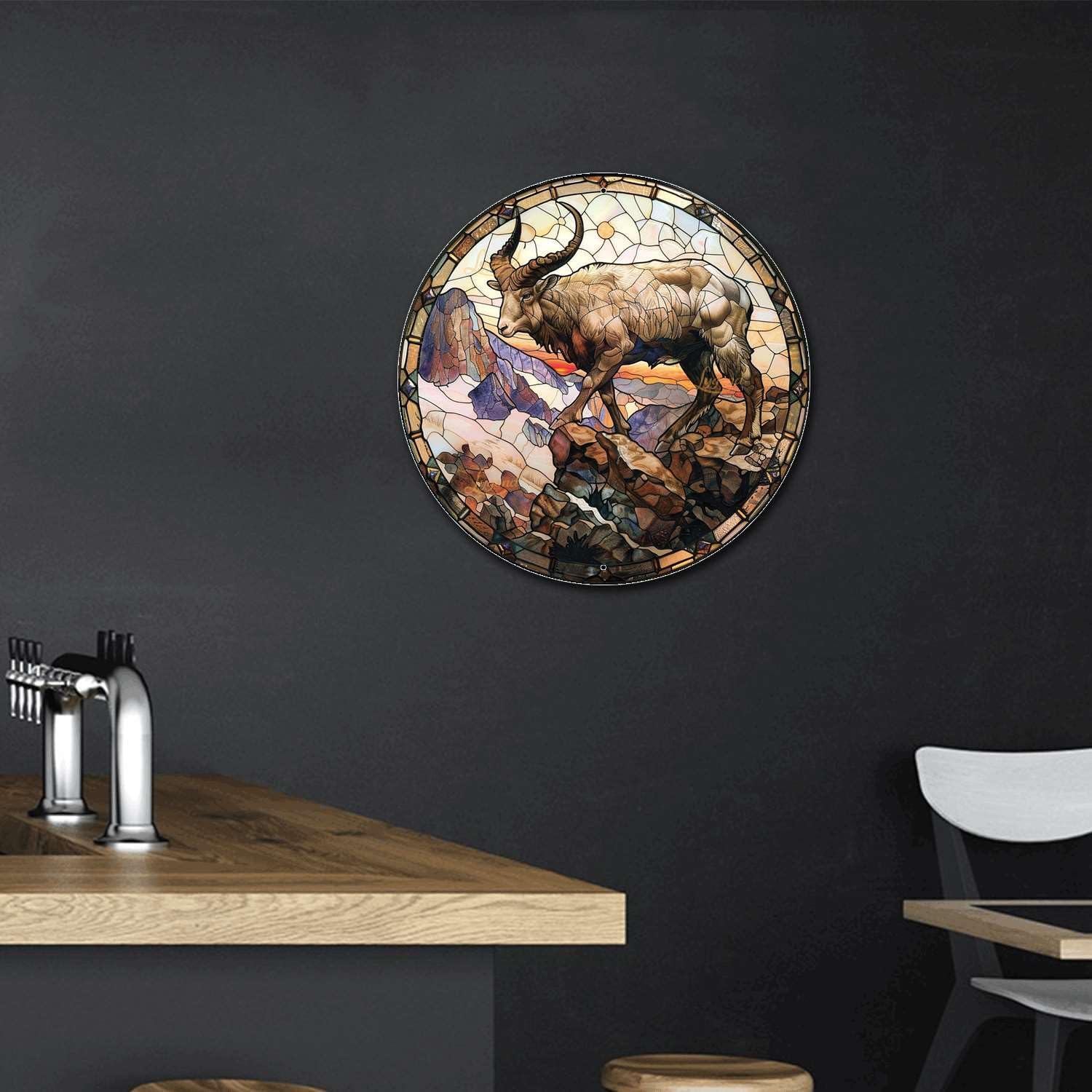 Lygond Metal Sign Tin Sign Circular Stained Glass Mountain Goat Vintage Sign For Club 8×8 Inches