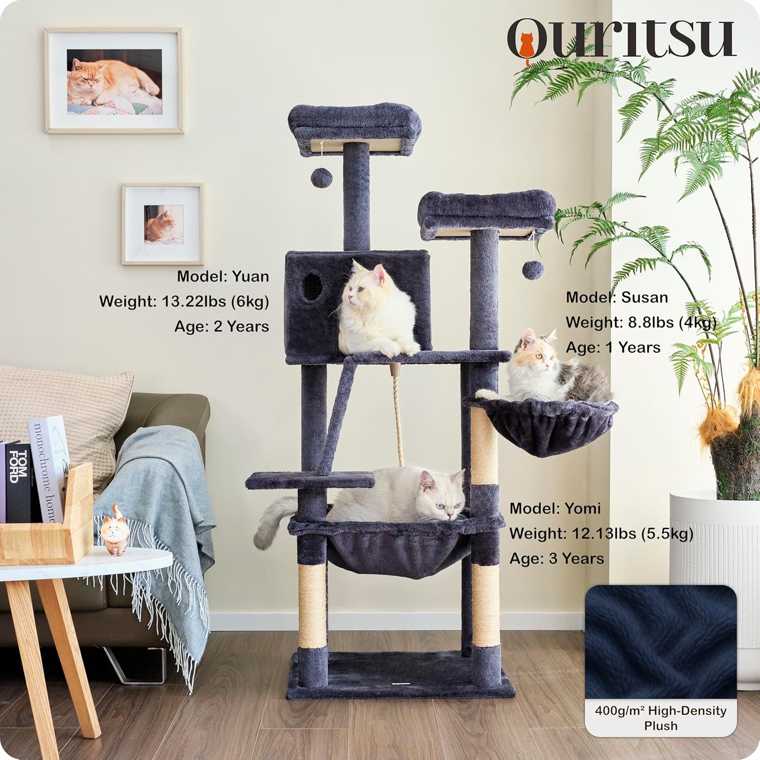 - [Maximum Safety & Stability] Your family’s safety is a priority! This heavy-duty cat tree includes an anti-tip kit, making it a sturdy and secure choice for even the most energetic climbers. If you’re looking for a cat tree large enough for 20 lbs cats, this cat tree house delivers stability and peace of mind