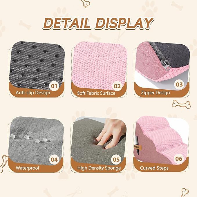 - 33D REBOUND HIGH-DENSITY FOAM: Our 33D foam delivers 63% faster rebound vs standard foam with enhanced weight capacity. Perfect for puppies, senior dogs, and pets recovering from surgery to access beds/couches safely. Dual-purpose as cat stairs for multi-pet households