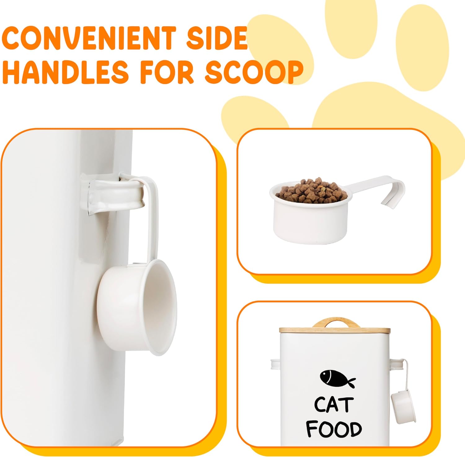 Calindiana Airtight Cat Food Storage Container with Bamboo Lid & Scoop – Farmhouse Cat Food Organizer, Gifts for Cat Lovers (Cream White)