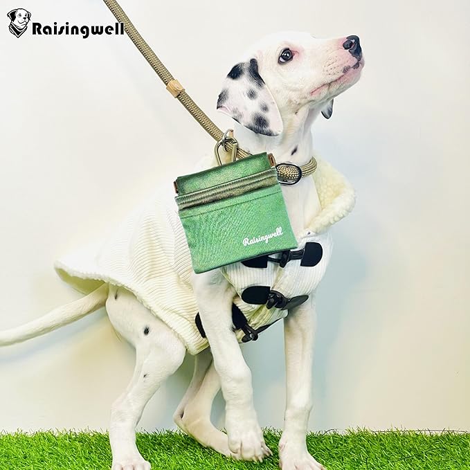 - Durable Tech Material: Raisingwell's dog treat training pouch is crafted from durable, washable, non-toxic vegan fabric, utilizing nano photonic crystal technology. In particular, the waterproof lining addresses the issue of difficult cleaning inside the training pouch.