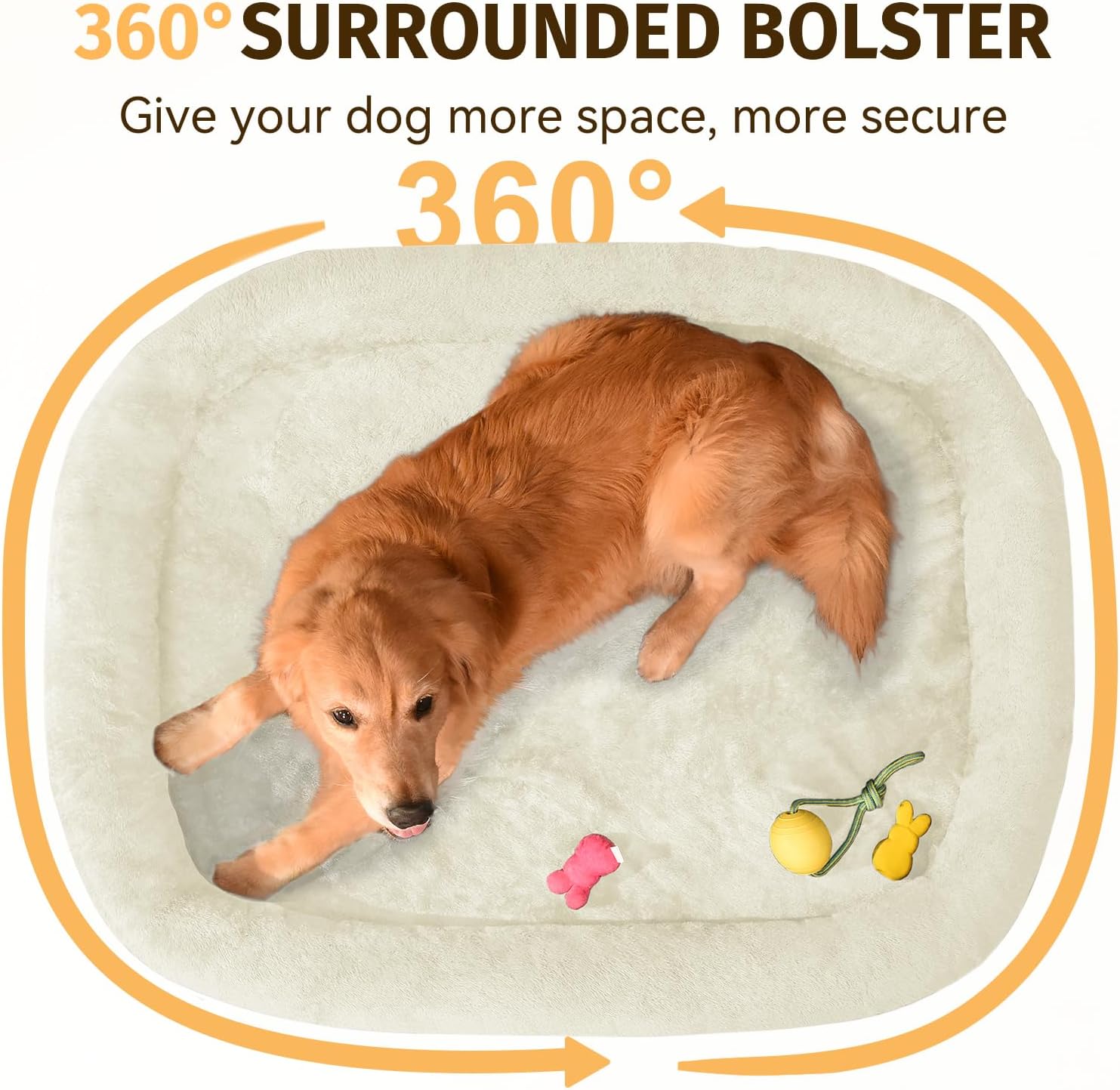 - 360° Surrounded Support: This 360° full circle design creates a secure sleeping environment, making our big dog bed ideal for dogs who prefer a more enclosed space; The bolsters also served as a headrest that provides additional support for the neck and back; Whether your dog likes to curl up or stretch out, this orthopedic dog bed accommodates all sleeping positions