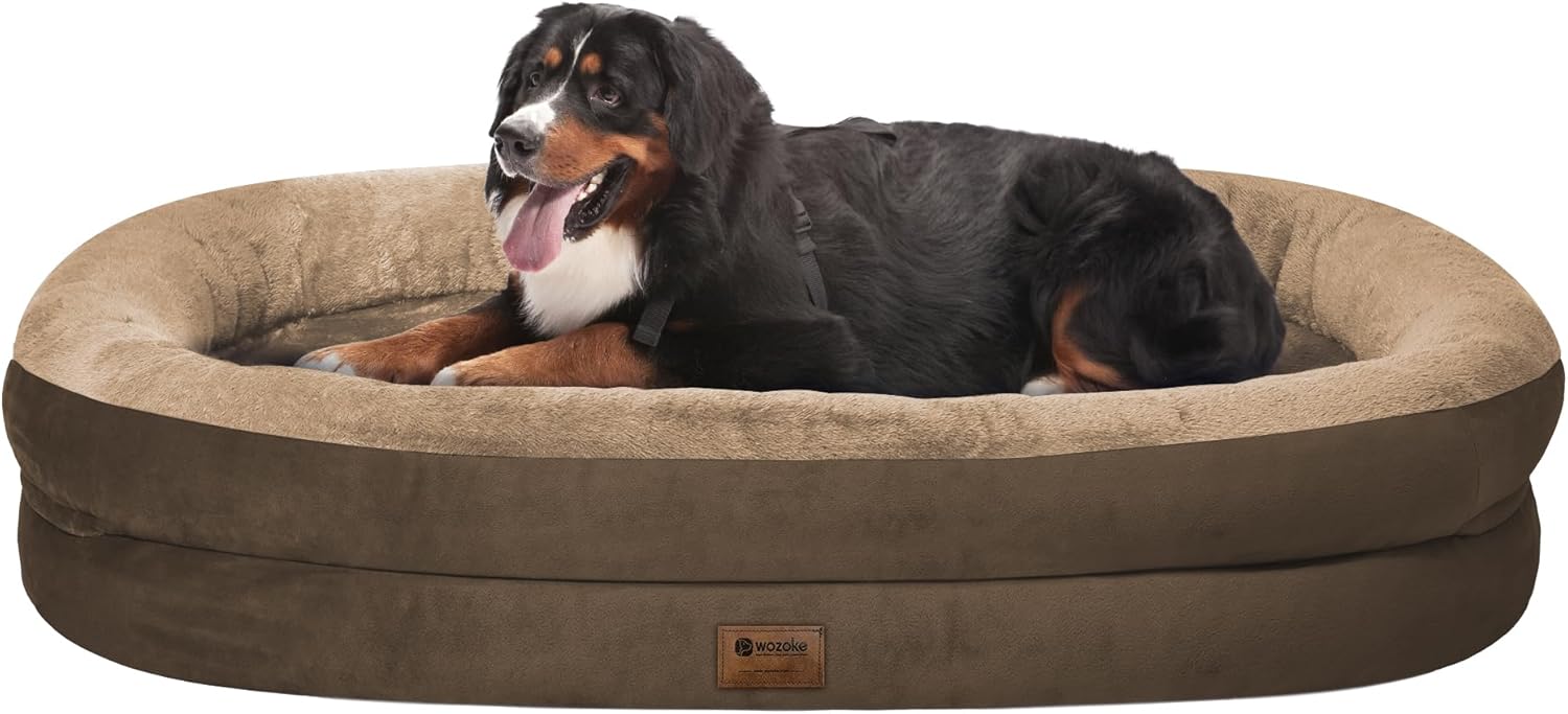 - 360° Surrounded Support: This 360° full circle design creates a secure sleeping environment, making our big dog bed ideal for dogs who prefer a more enclosed space; The bolsters also served as a headrest that provides additional support for the neck and back; Whether your dog likes to curl up or stretch out, this orthopedic dog bed accommodates all sleeping positions