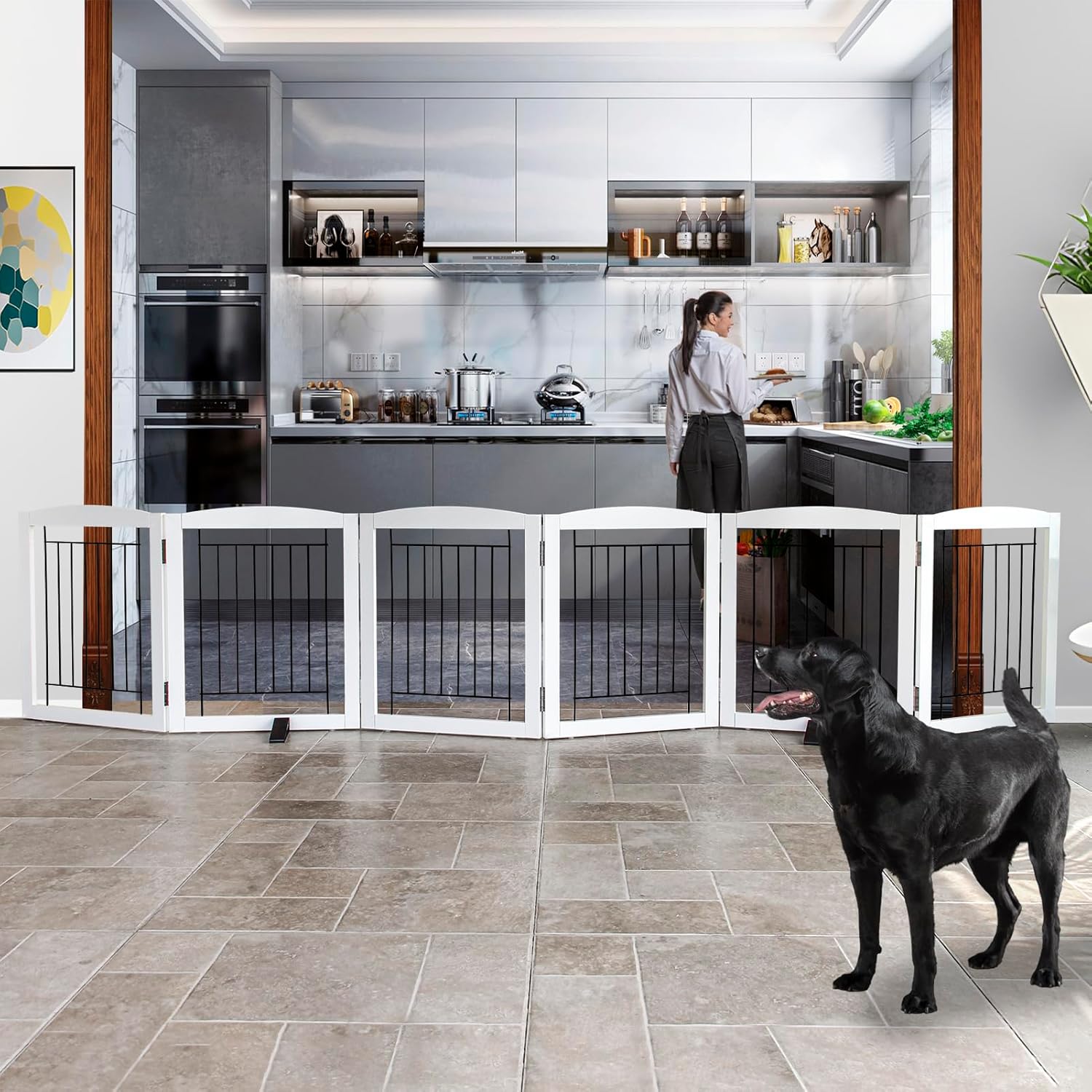 - 【Collapsible and Expandable Design】This dog gate is freestanding and can be folded into a wide Z - shape, allowing you to use it in full hallways, double gates, standard doorways, bedrooms, staircases, or any place in your house.