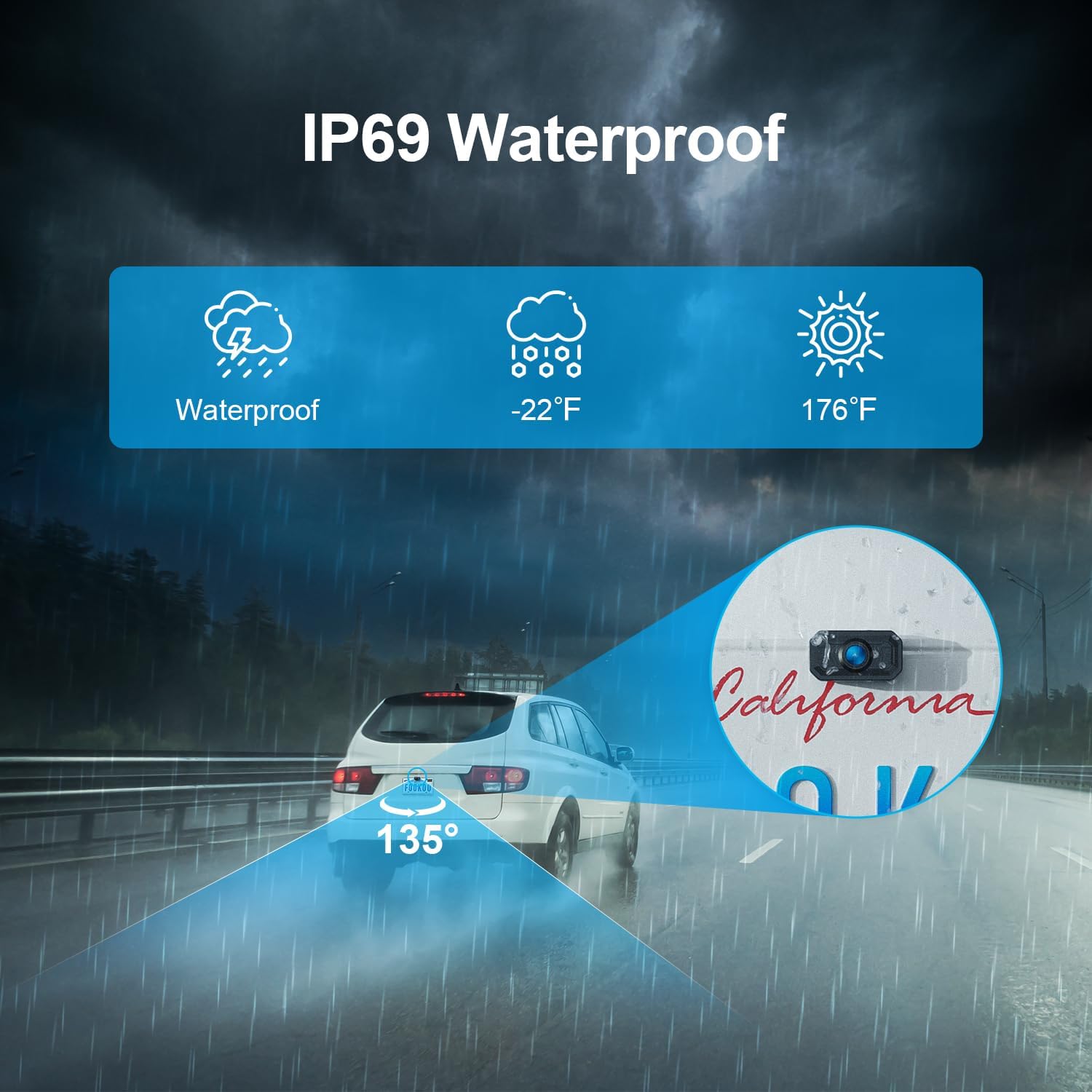 - IP69 Waterproof Liscent Plate Camera: The housing of license plate camera is made of ABS+PC metal raw material. Featuring with IP69 waterproof rating, it is more heat resistant and less likely to bend or break, which is able to work perfectly and provide clear images in extreme environments from -22Β°F to 176Β°F. It can tenaciously resist the baptism of wind, rain, dust, enhancing the safety index and service life