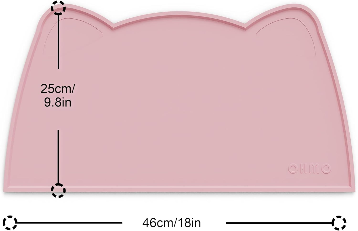 OHMO - Cat Food Mat, Silicone Pet Feeding Mat for Floor Non-Skid Waterproof Dog Water Bowl Tray, Easy to Clean Pet Placemat (Pink, 18 * 9.8'')