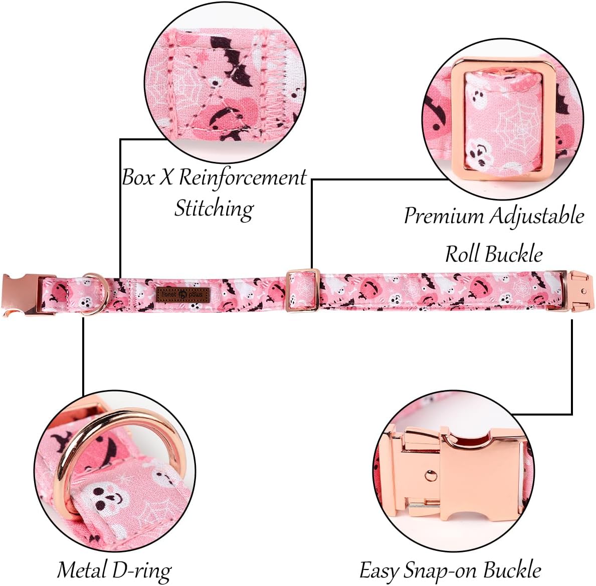 Lionet Paws Halloween Dog Collar With Flower - Cute Fall Pink Adjustable Cotton Pumpkin Ghost Pet Collar for Small Girl Puppies