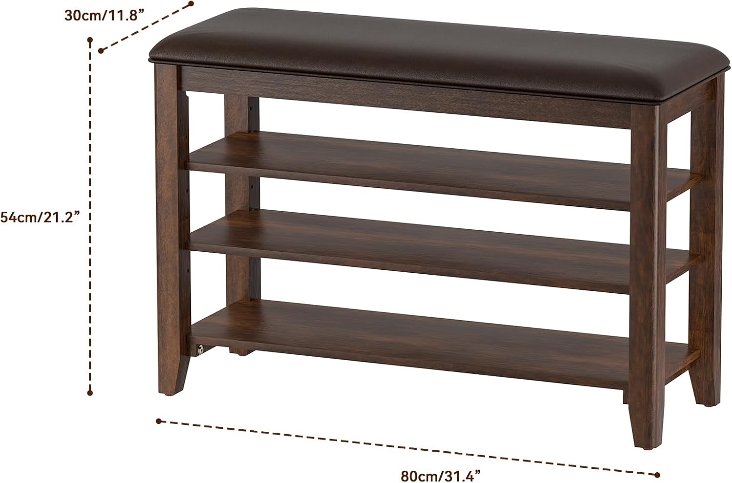 Entryway Shoe Storage Bench with Leather Cushion, Shoe Organizer Bench for Entryway, Ideal for Hallways Front Doors Entrances Mudrooms Featuring Rubberwood And 3 Height-Adjustable and Removable Shelve