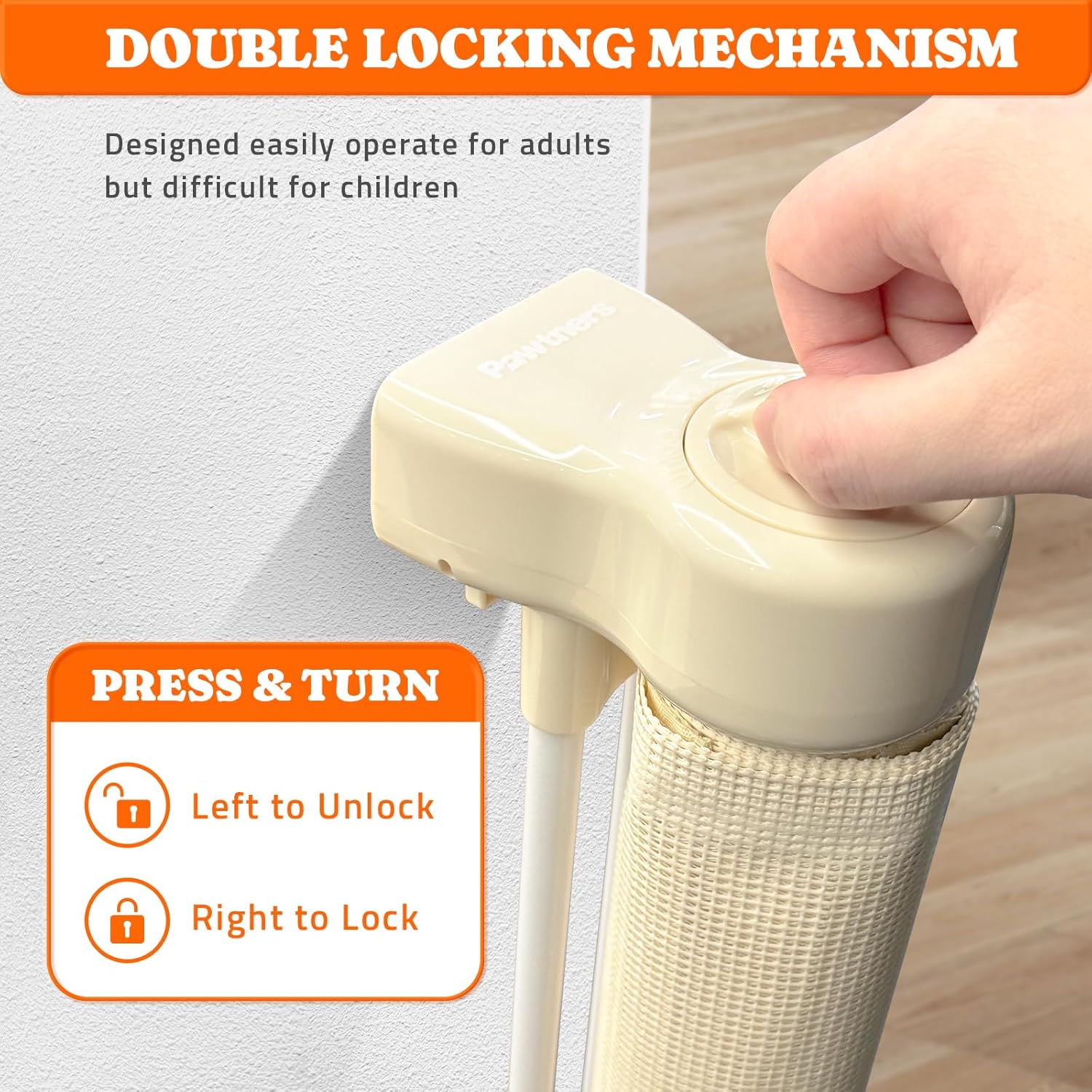 - Double Locking Mechanism: The knob (Press & Turn Design) at the top of the baby gate with cat door, especially the tall baby gate, ensures easy use for adultsβopen and close with one hand. Meanwhile, curious little ones won't be able to unlock this secure safety gate