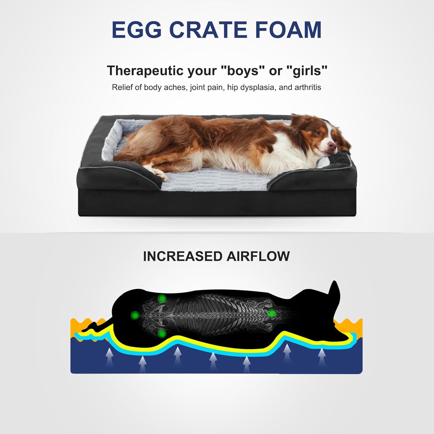 - Large Dog BedOrthopedic Support: Our orthopedic dog sofa is designed to give your pet support for a comfortable deep sleep. High-density egg-crate foam helps distribute weight evenly and provides the perfect amount of pressure relief and joint support.