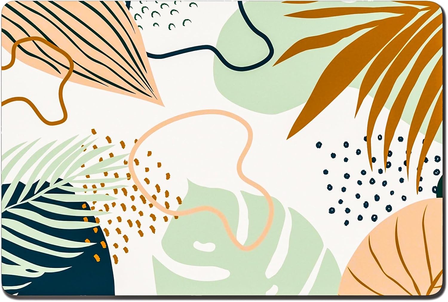 Rnivvi Dog Food Mat, 12" x 19" Boho Absorbent Dog Cat Bowl Mat for Food and Water, 3MM Anti-Slip Rubber Pet Feeding Rug Protect Floors, Puppy Placemat for Feeding & Watering Supplies, Tropical Leaves