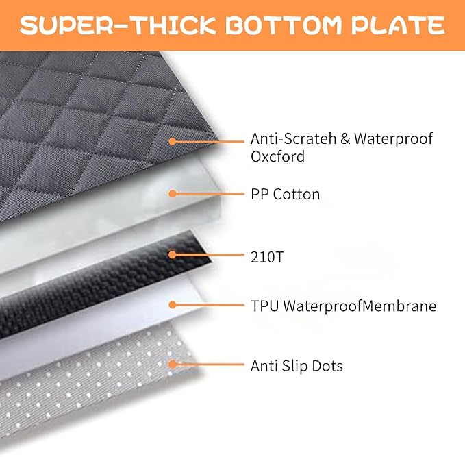 - Larger Size & Tear Resistant-We always see other front seat car dog covers buyers show and find that their front seat car dog covers are always shorter and narrower than the car seats. Buyers always complain why there is no dog front seat cover that can completely cover the car seats. So we designed this 20.5βW x 45βfront seat cover for car, which is 1β wider and 2βlonger than standard ones,especially for large size of trucks. The durable material is scratch resistant which is made from 600D oxford, thick PP cotton, waterproof TPU film and anti slip bottom !