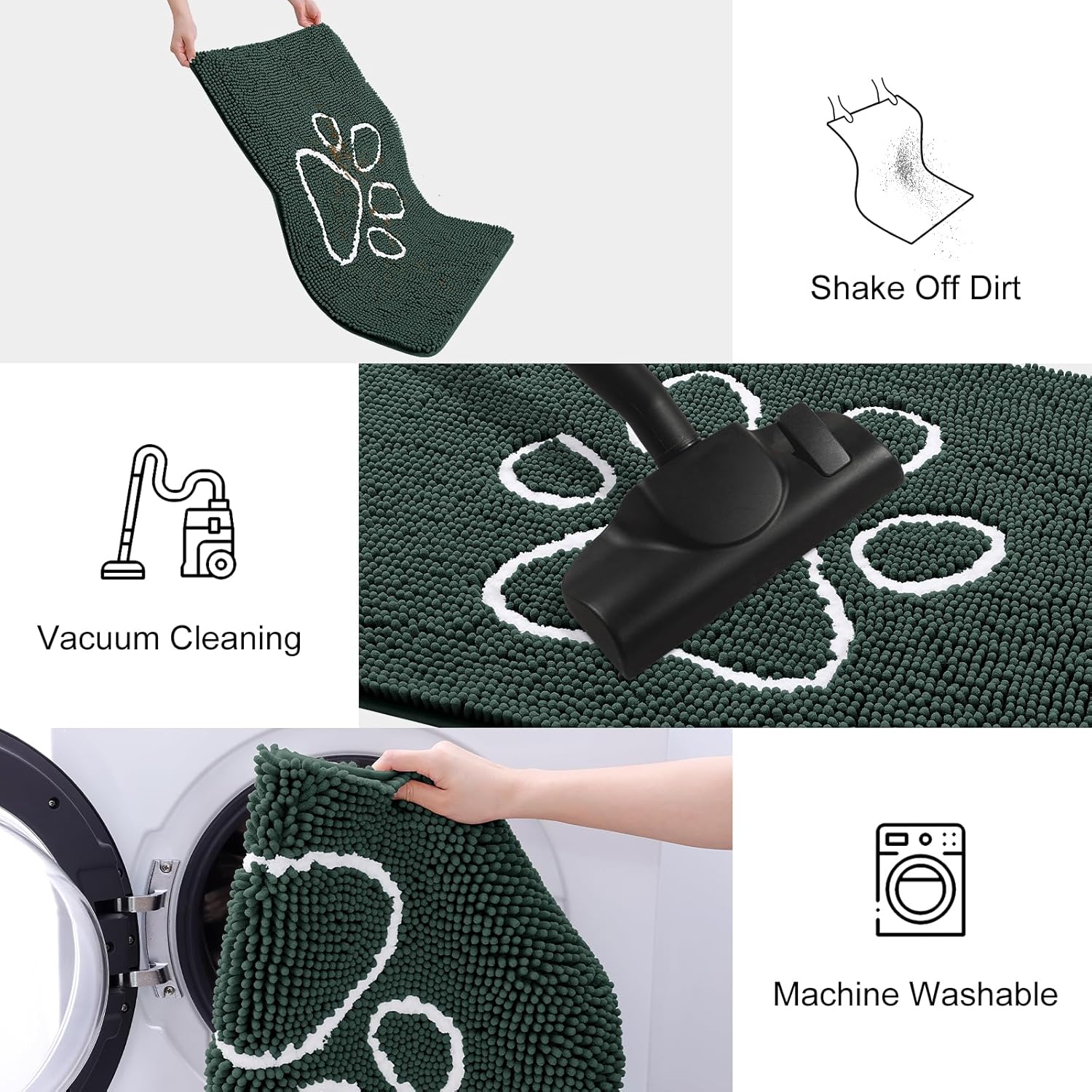 Smiry Dog Door Mat for Muddy Paws, Absorbent Dirt Trapper Non Slip Quick Dry Washable Chenille Mat for Mud Dogs, Entry Rug for Indoor and Outdoor (59x24 Inches, Green)