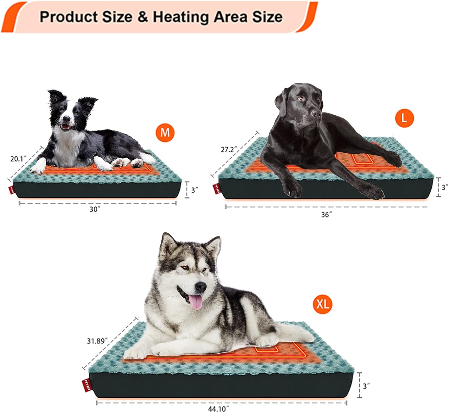Heated Dog Bed with12V~24V Safe Voltage, Electric Heating Arthritis Orthopedic Dog Bed with Thickened Memory Foam, Heated Pet Bed with Waterproof Cover for Medium Dogs, Large Dogs (Medium)