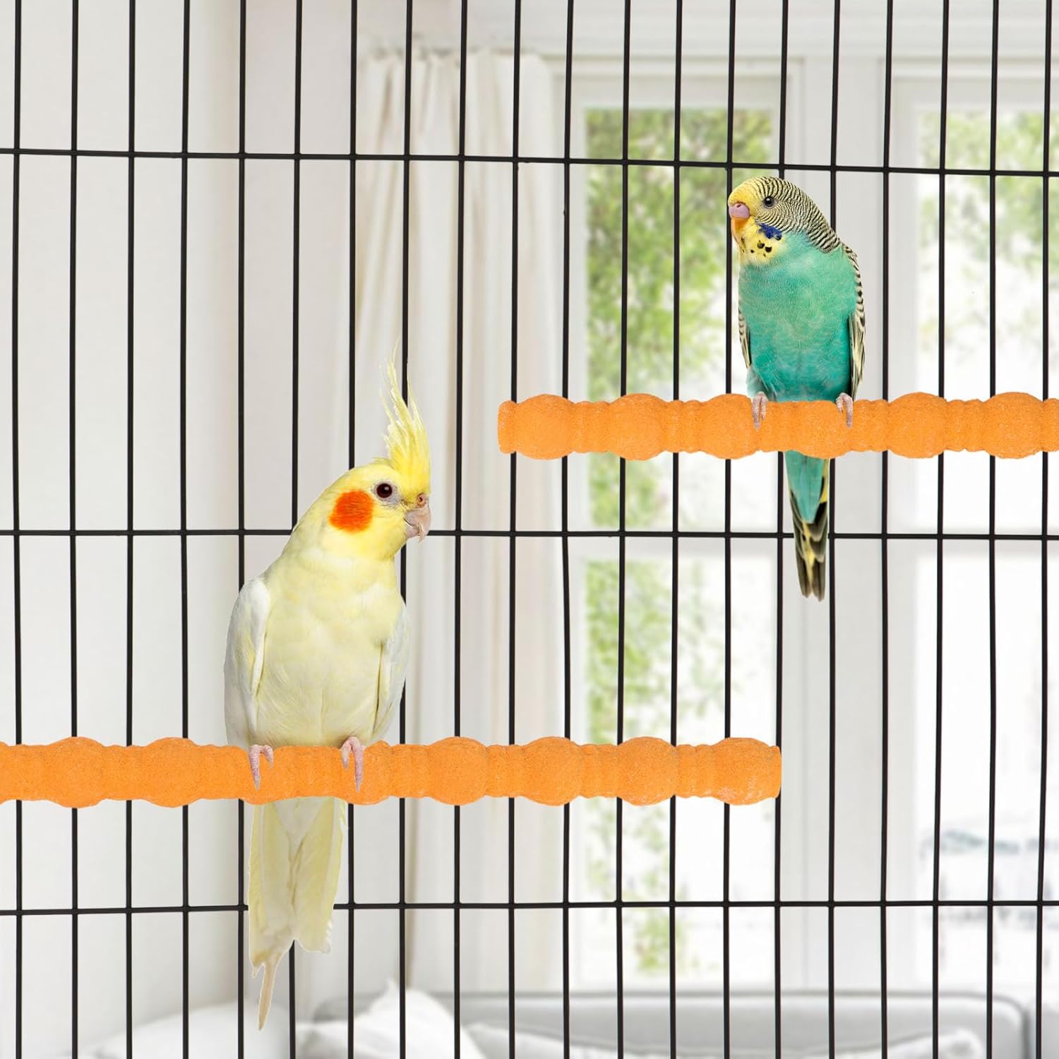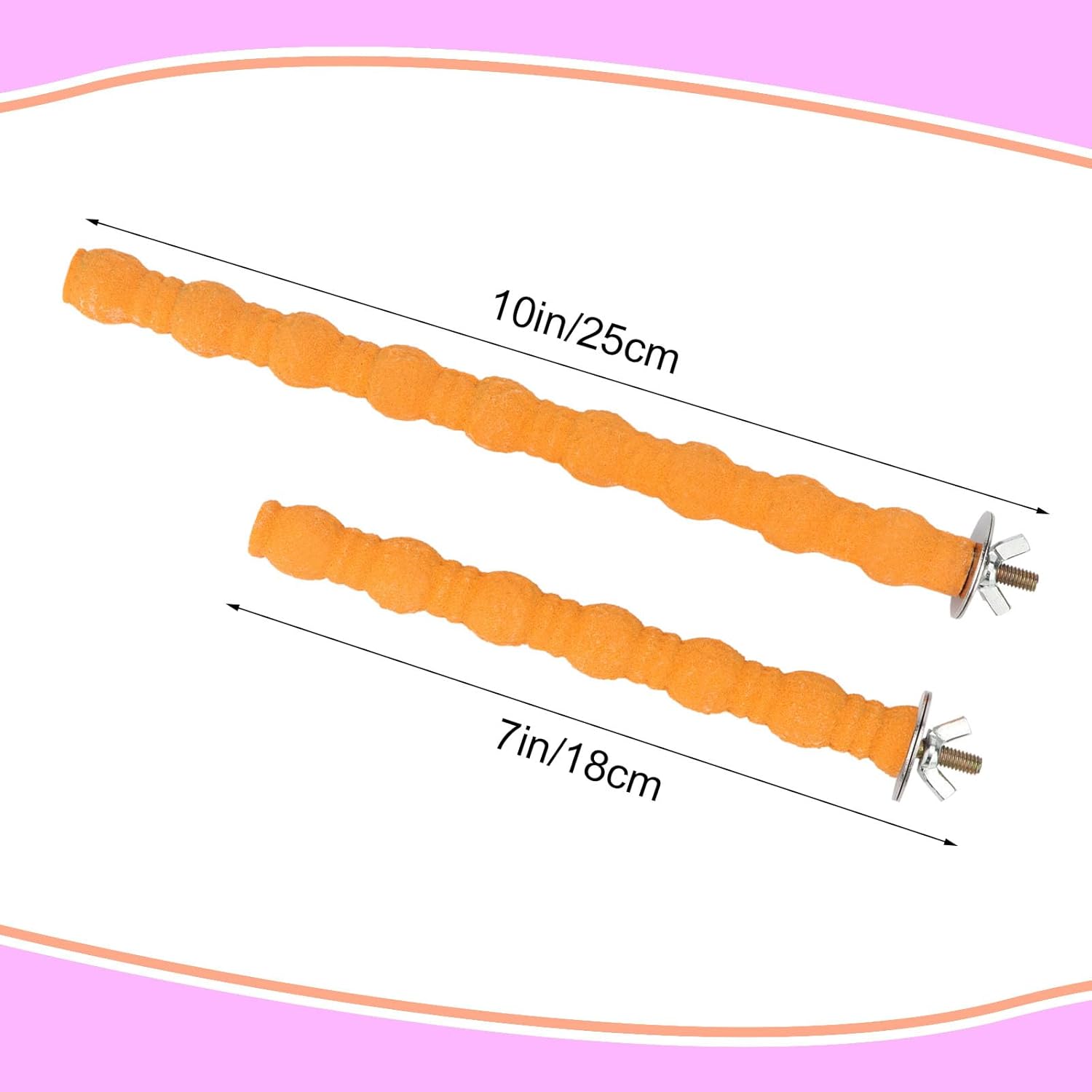 Hypeety 2PCS Wood Perch Stand Paw Grinding Stick Toy Pet Bird Cage Stand Platform for Bird Parrot Budgies Parakeet Cockatiels Cage Accessories (7in/10in) (Orange)