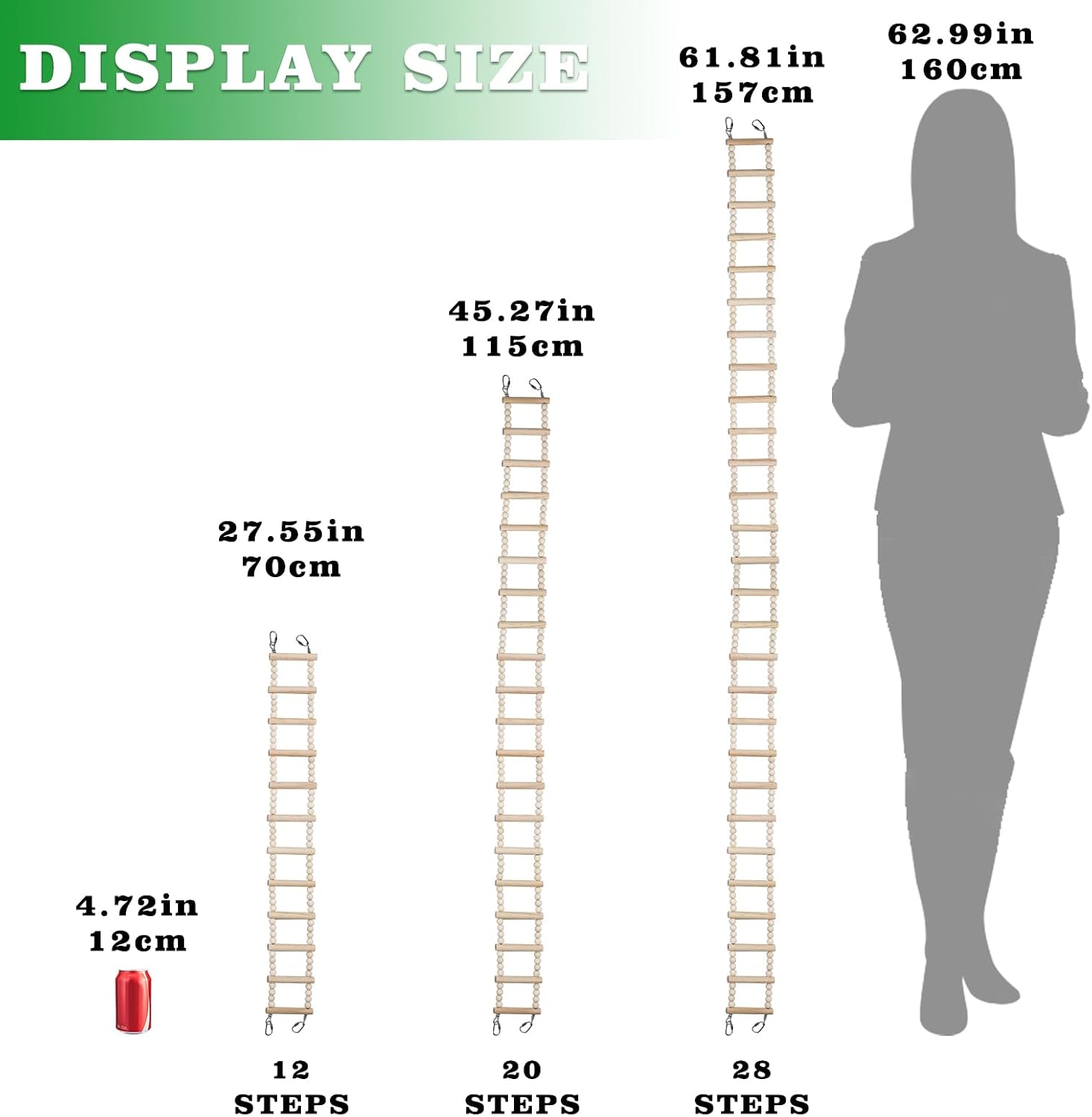 • 【Great for Small Pets】: Perfect for a range of small to medium-sized birds like african greys, budgies, cockatiels, lovebirds, conures, quakers and parrotlets. It’s also ideal for small animals like rats, sugar gliders, squirrels, and even snakes. This versatile ladder promotes natural climbing instincts, helping keep your pets active and content.