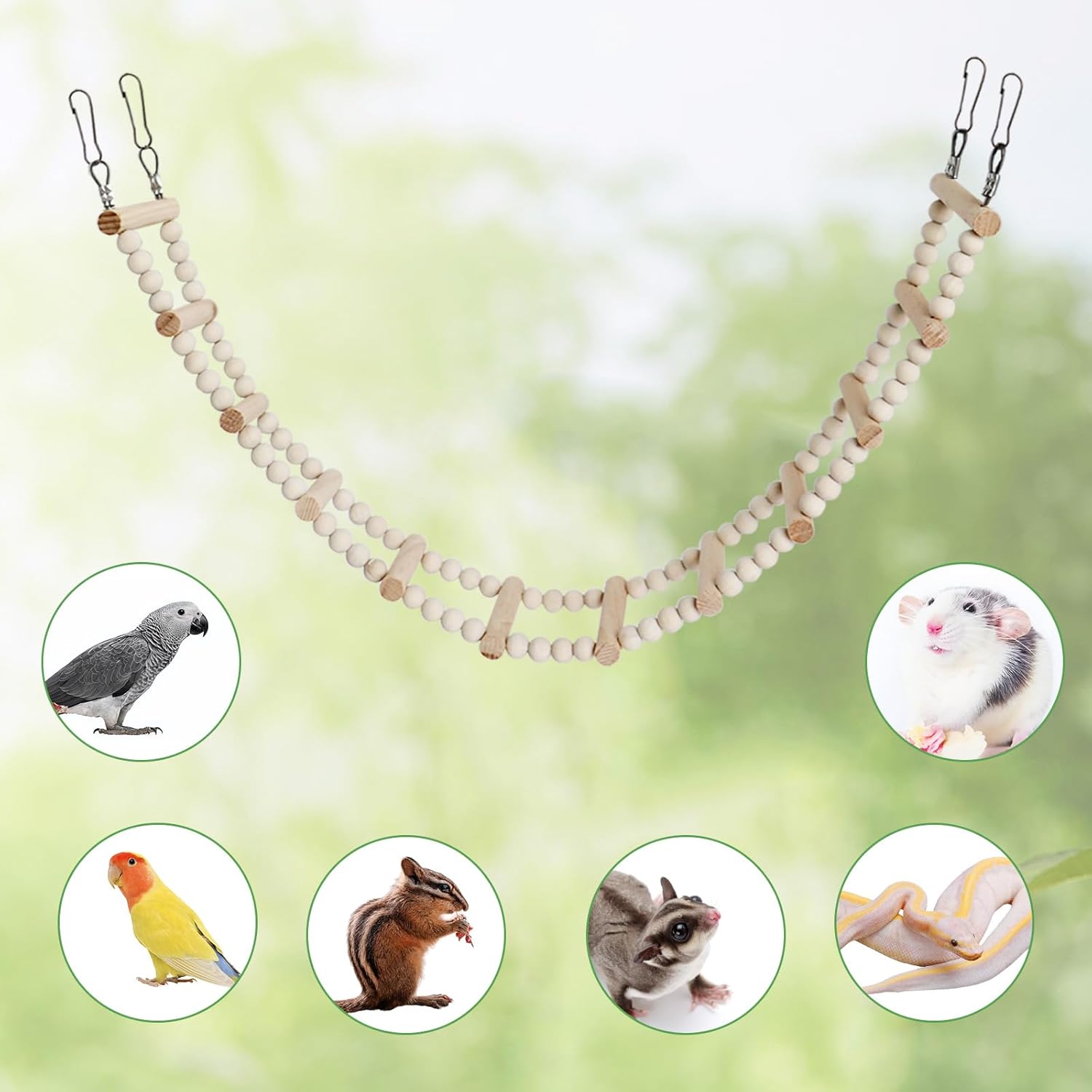 Long Bird Ladder with Wooden Rungs and Beads, Parakeet Climbing Swing Toys, Bird Cage Accessories, Wooden Climbing Bridge Toys for Parrots, Rat, Sugar Gliders, Squirrels, Snakes