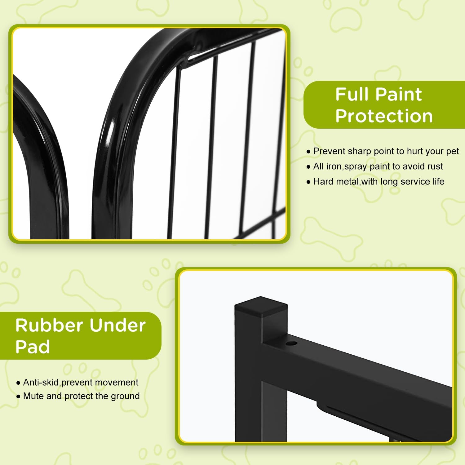 - PET-SAFE DESIGN WITH FLOOR PROTECTION: Rubber pads prevent the playpen from sliding and protect the floors from scratches, making it great as a puppy playpen indoors. Smooth edges add extra safety