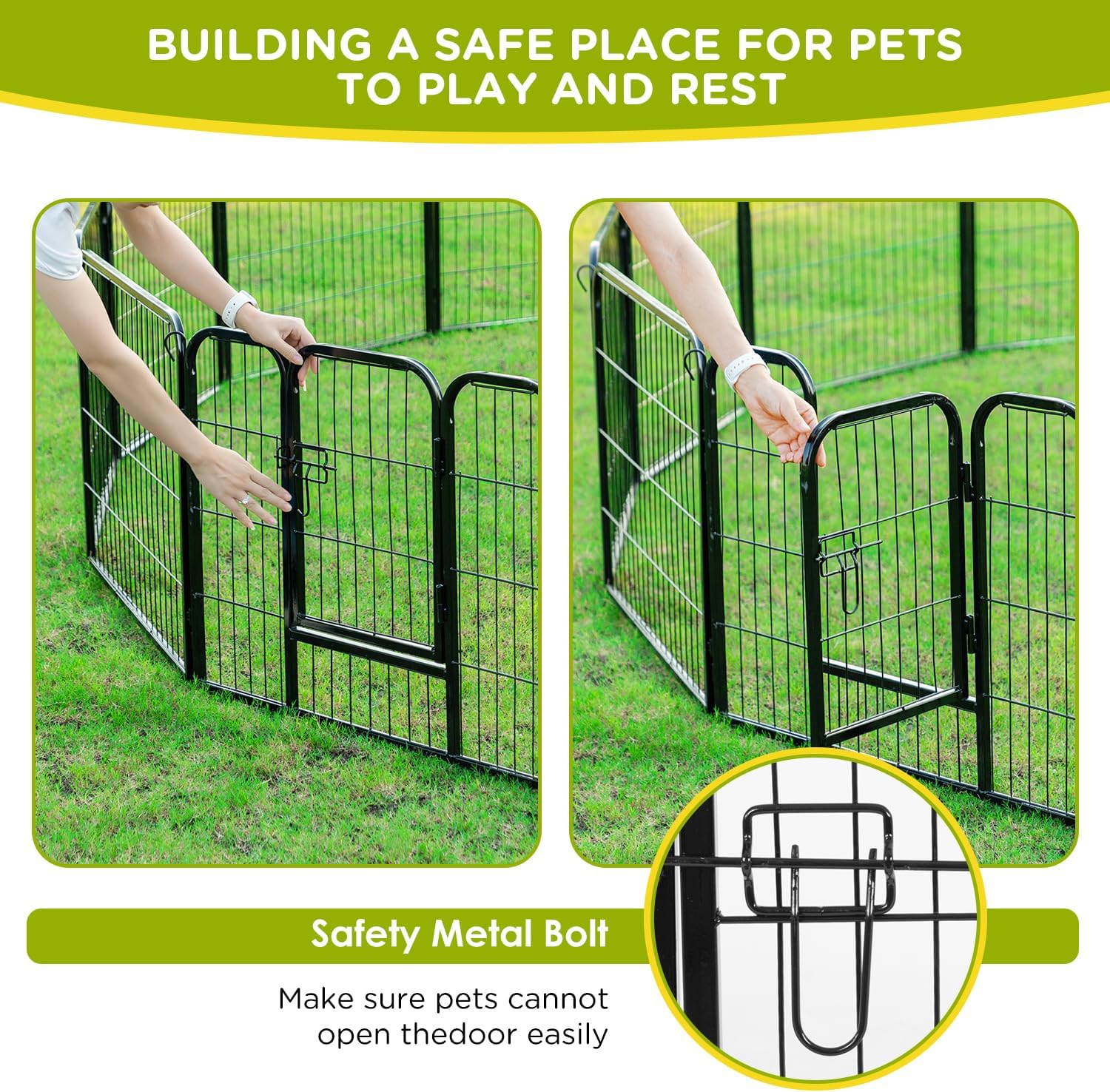 - USE AS EXTENSIONS OR REPLACEMENTS: These strong durable metal fence panels easily connect to expand your existing dog playpen or replace damaged sections, keeping your pet’s area safe and secure.