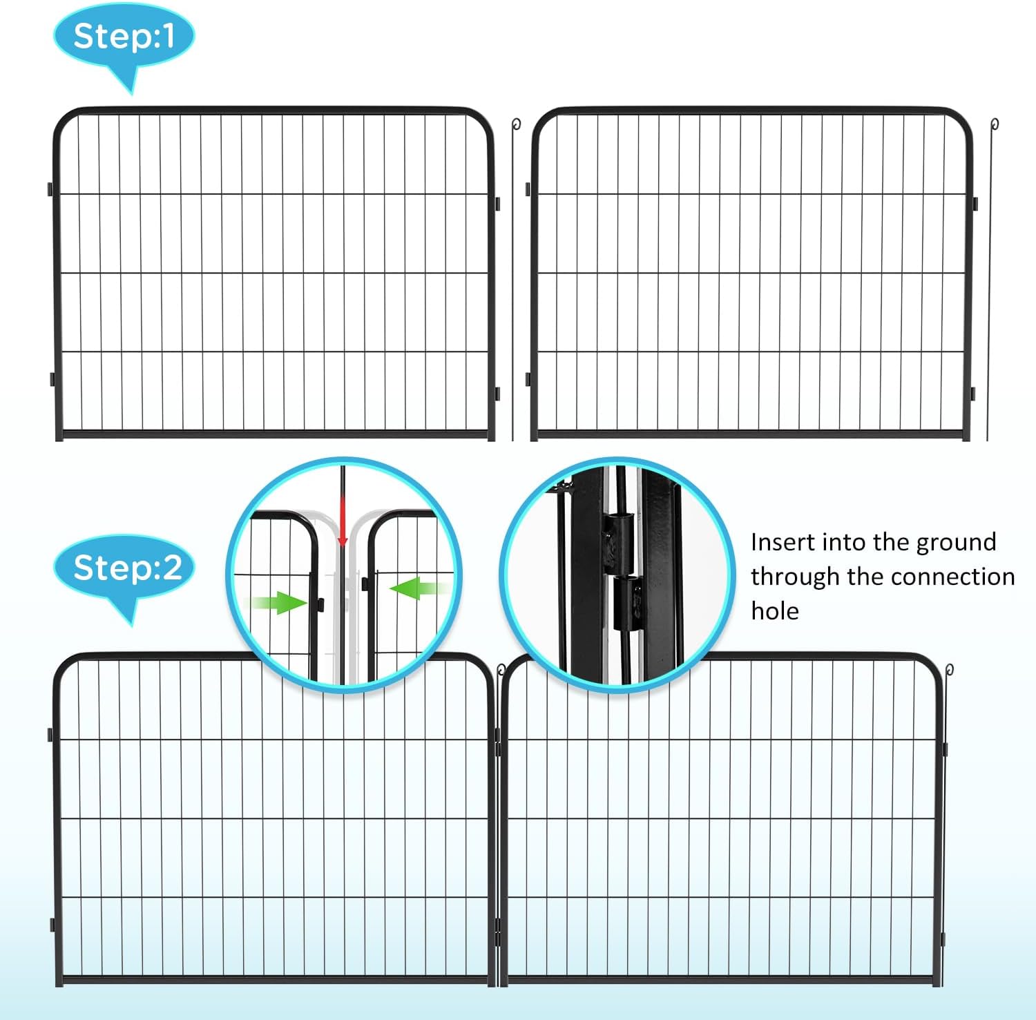 - USE AS EXTENSIONS OR REPLACEMENTS: These strong durable metal fence panels easily connect to expand your existing dog playpen or replace damaged sections, keeping your petβs area safe and secure.