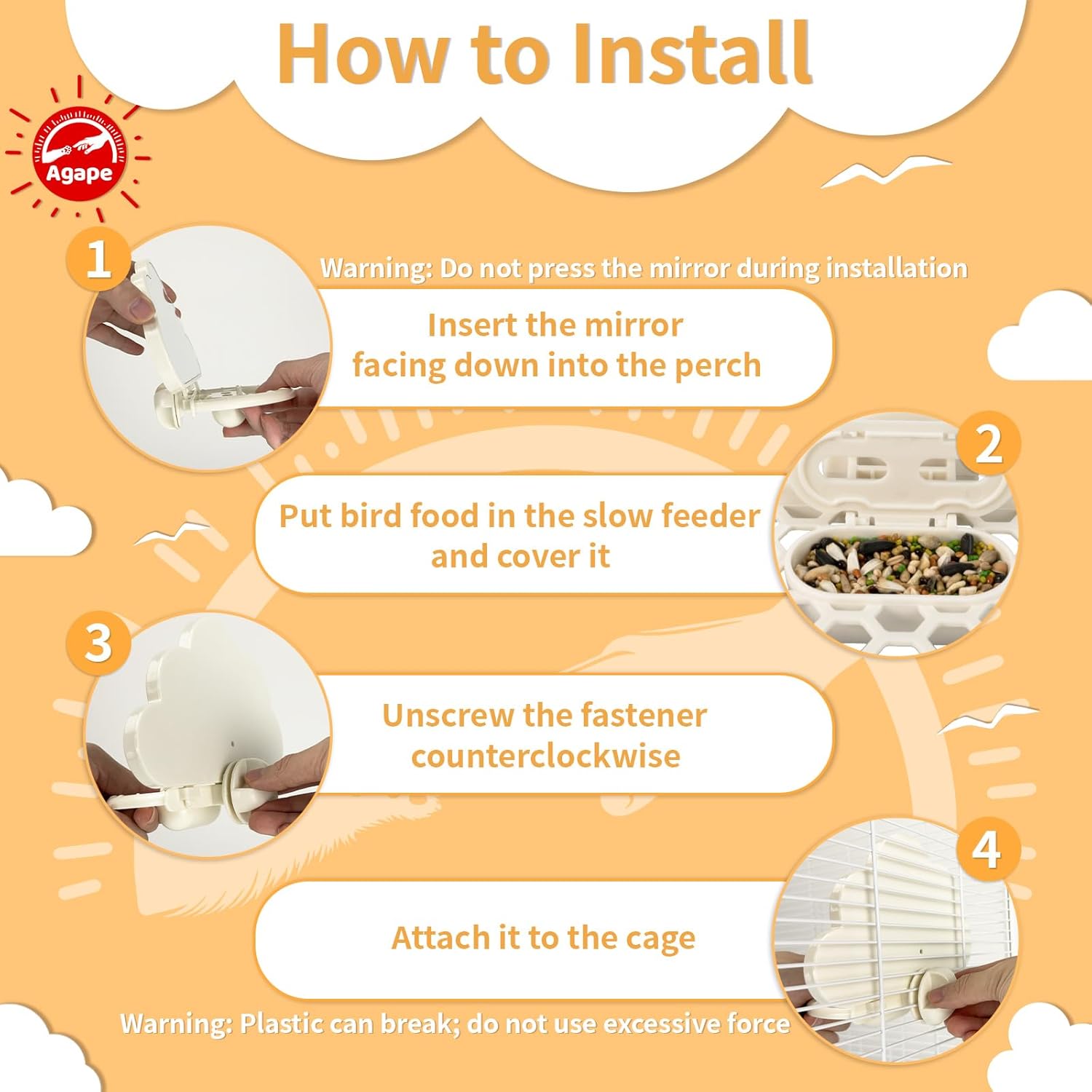- 【Add-On】This uniquely designed mirror combines the functionality of a bird slow feeder, alleviating boredom and anxiety while enhancing intelligence. The special handle allows birds to open the mirror on their own, adding an interactive element to their playtime