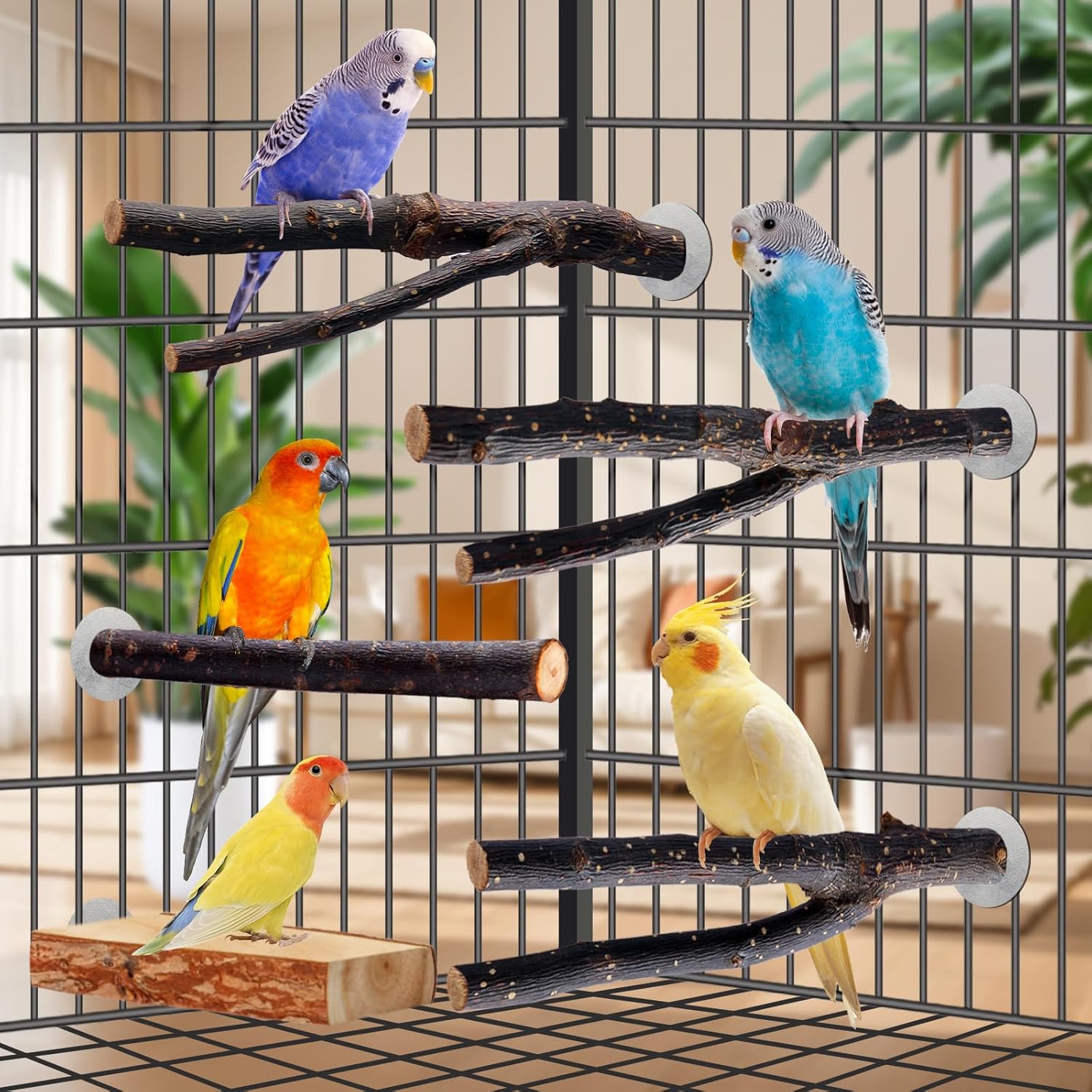 Bird Toys Parakeet Perch Budgie Perch Wood Stand Fork Toys Multi-Branch Perch Platform Toy for Small Conures,Cockatiel,Parrotlet,Lovebird,Parrot,Finches