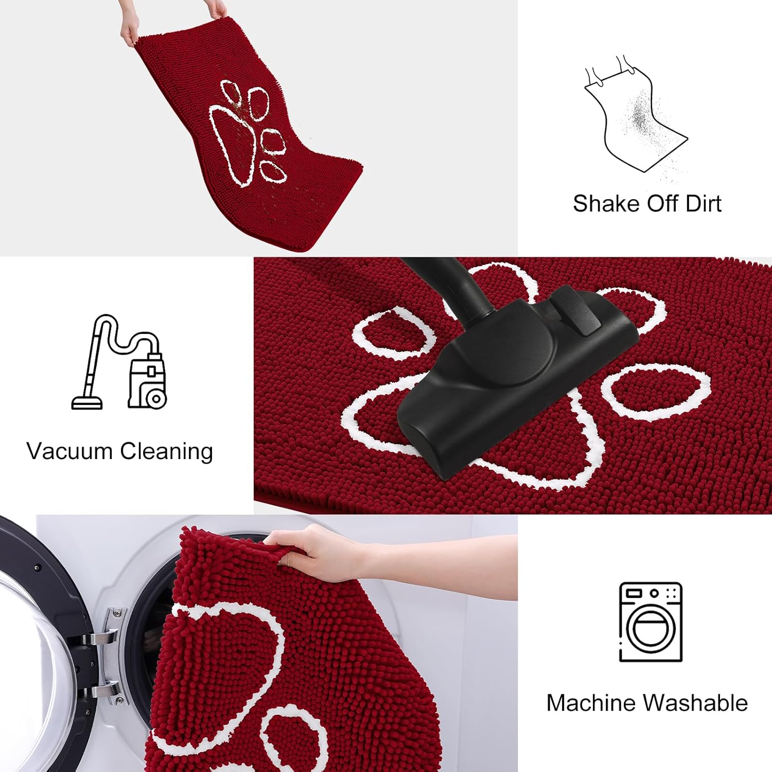 Smiry Dog Door Mat for Muddy Paws, Absorbent Dirt Trapper Non Slip Quick Dry Washable Chenille Mat for Mud Dogs, Entry Rug for Indoor and Outdoor (24x16 Inches, Red)