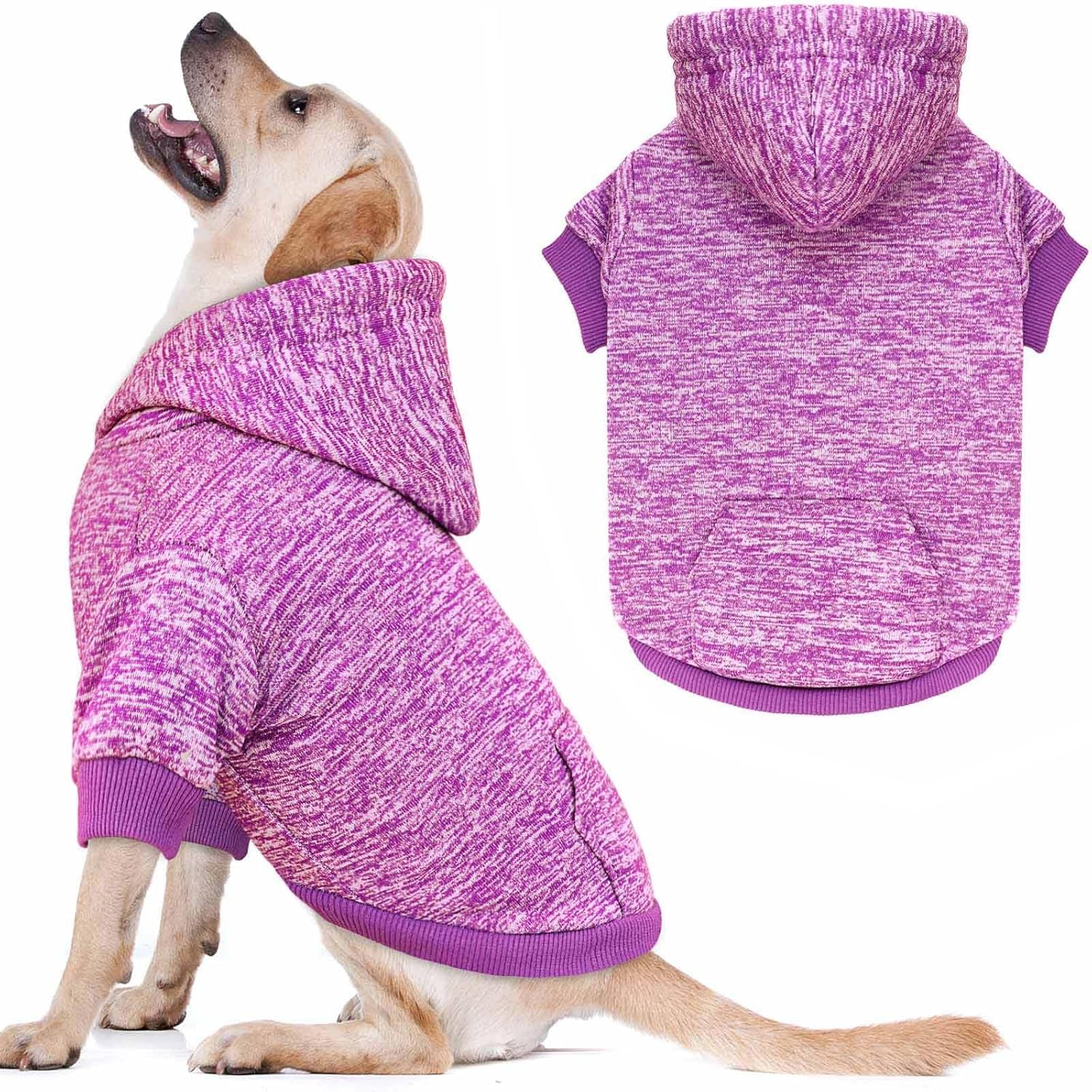 Dog Sweaters for Large Dogs Hoodie Fleece Dog Sweater Soft Clothes Sweatshirt with Pocket Hoodie for Large Dogs(Purple&L)