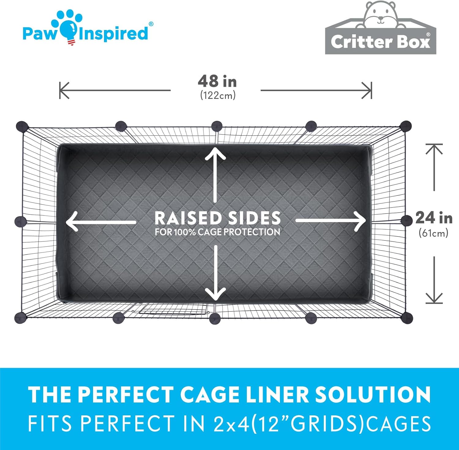 - PERFECT FIT FOR 2x4 CAGES WITH 12-INCH GRIDS: These assembled cage liners are 24 x 48 inches (61 x 122 cm) which are the perfect size to use as a 2x4 cage liner for your guinea pig, ferret, bunny rabbit, rat, hamster, hedgehog, chinchilla, and all other small animals. Available in multiple colors, use the gray side or the color option you like best for your pet's habitat!